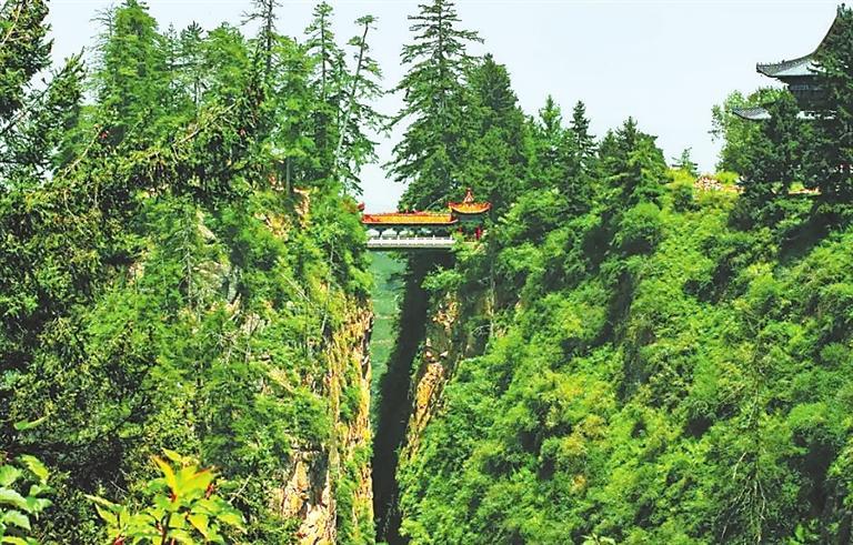 其實,石門山系小隴山林區(qū)的余脈,蘊藏著得天獨厚的植物資源,有我國南北的各種野生植物百余種,其中有很多還是園林中的珍品。據(jù)景區(qū)資料得知,石門山由北峰、麒麟峰、南峰構(gòu)成。北峰建有無量殿、靈官殿、文昌宮、三清殿、鐘樓。麒麟峰建有圣母宮、三肖殿、三仙庵。南峰峰頂建有玉皇閣和三官殿。這些殿宇大多為明清重修,依山就勢,錯落有致,風格纖巧,玲瓏俊秀,最小的殿宇僅有5至6平方米,在石門山的萬綠叢中時隱時現(xiàn),猶如一幅濃淡相宜,層次分明的水墨畫,形成了石門山特有的風韻。