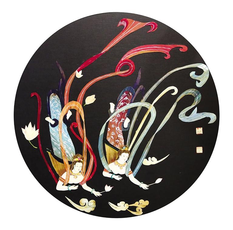 周玉梅曾經(jīng)說過,“如果我的生命里沒有了剪紙、繪畫這些東西,我的靈魂也將變得枯萎。”憑借著對(duì)繪畫的熱愛,她的麥稈畫作品幾乎達(dá)到了爐火純青惟妙惟肖的程度。在展覽現(xiàn)場,她的《親情系列之骨肉情深》麥稈作品呈現(xiàn)的是兩只老虎,幼虎憨態(tài)可掬,雌虎一改威嚴(yán)姿態(tài),舐犢情深的“老母親”形象活靈活現(xiàn)。在她親情系列的畫作中,無論是羔羊、奔馬、老黃牛等動(dòng)物皮毛部分皆用細(xì)如針尖的麥稈粘貼而成,一幅畫作成千上萬根麥稈不僅考驗(yàn)著作者的功力,更考驗(yàn)著作者的耐力。作為甘肅山丹人,畫敦煌飛天是每一個(gè)甘肅人的情懷。因此,她創(chuàng)作的《飛天》畫作中,飛天身著彩色飄帶在空中飄逸飛舞,而這正是周玉梅畢生追求的藝術(shù)境界。