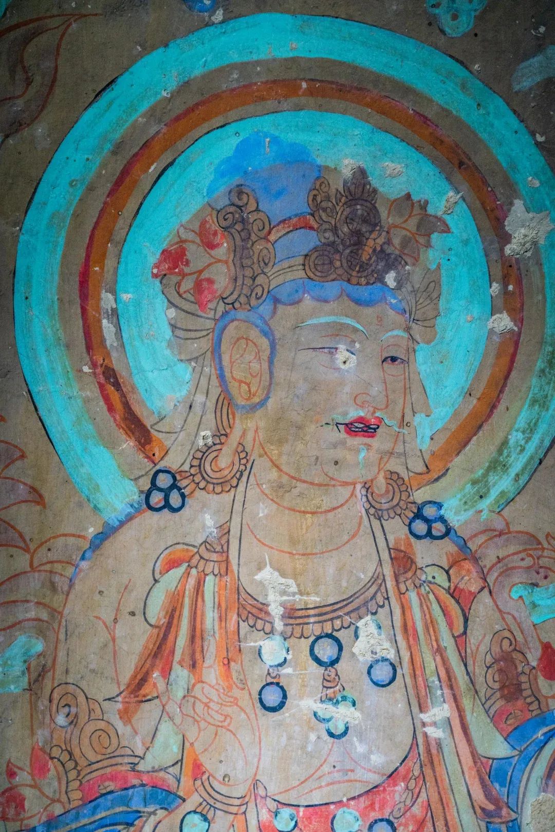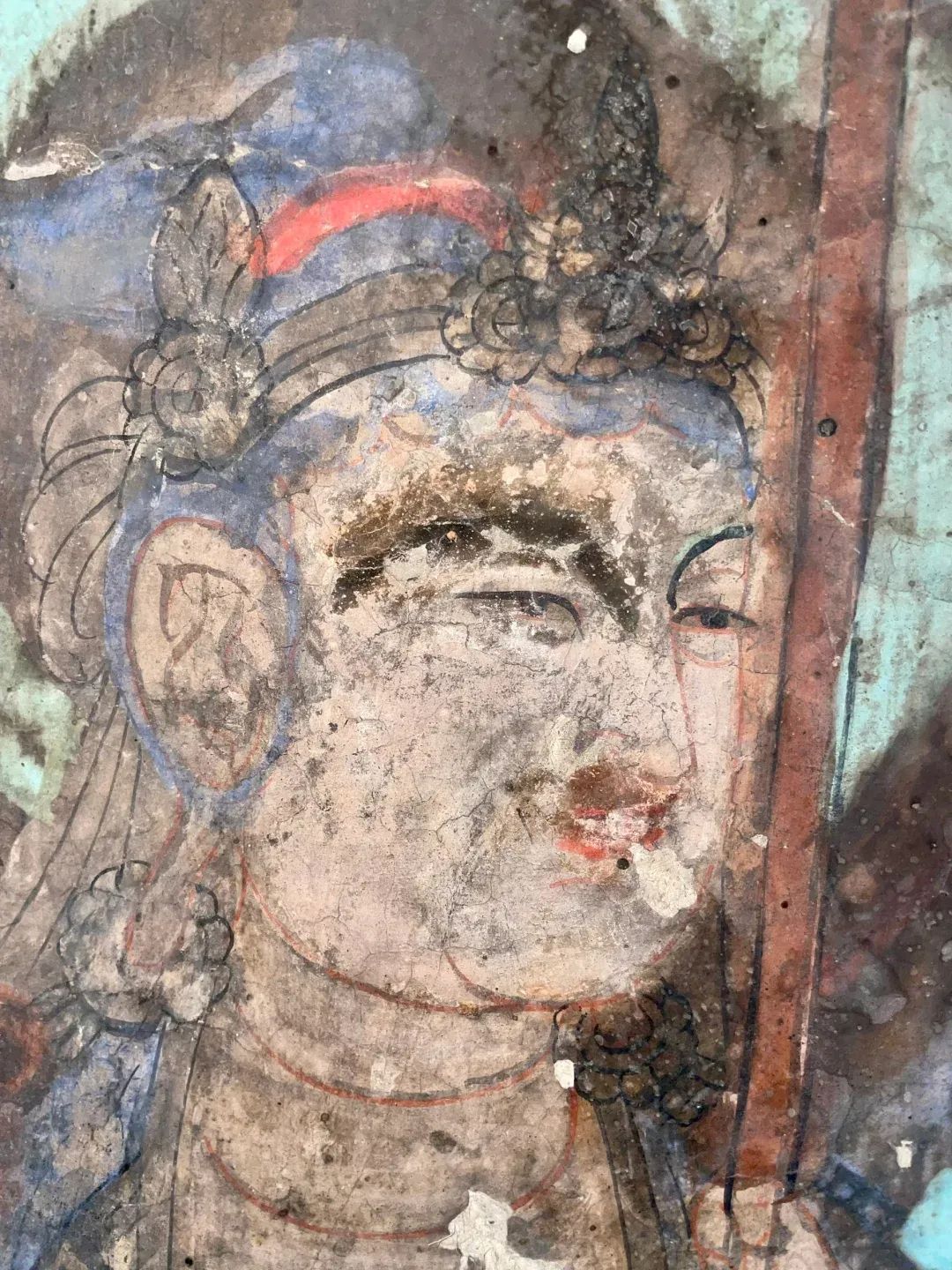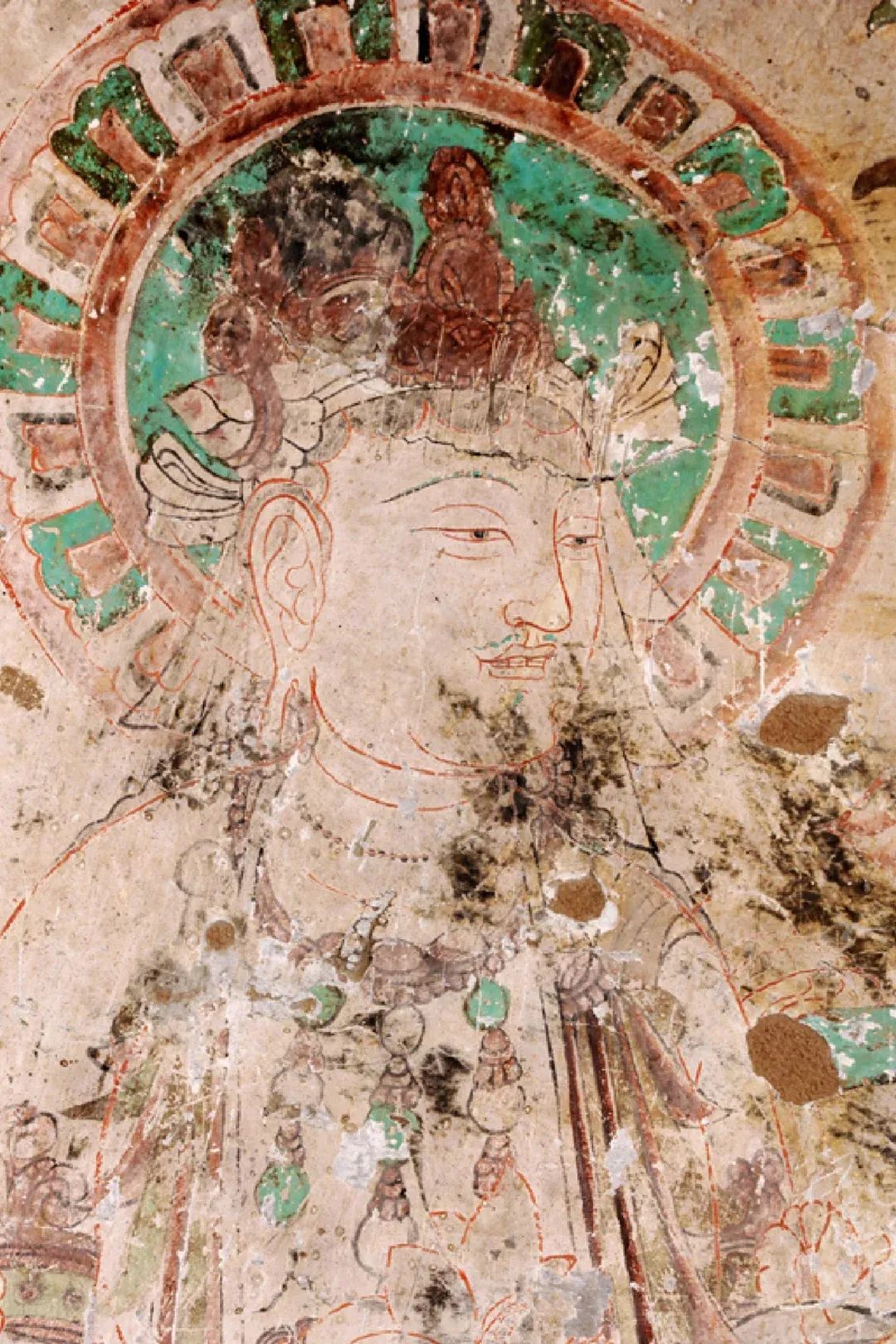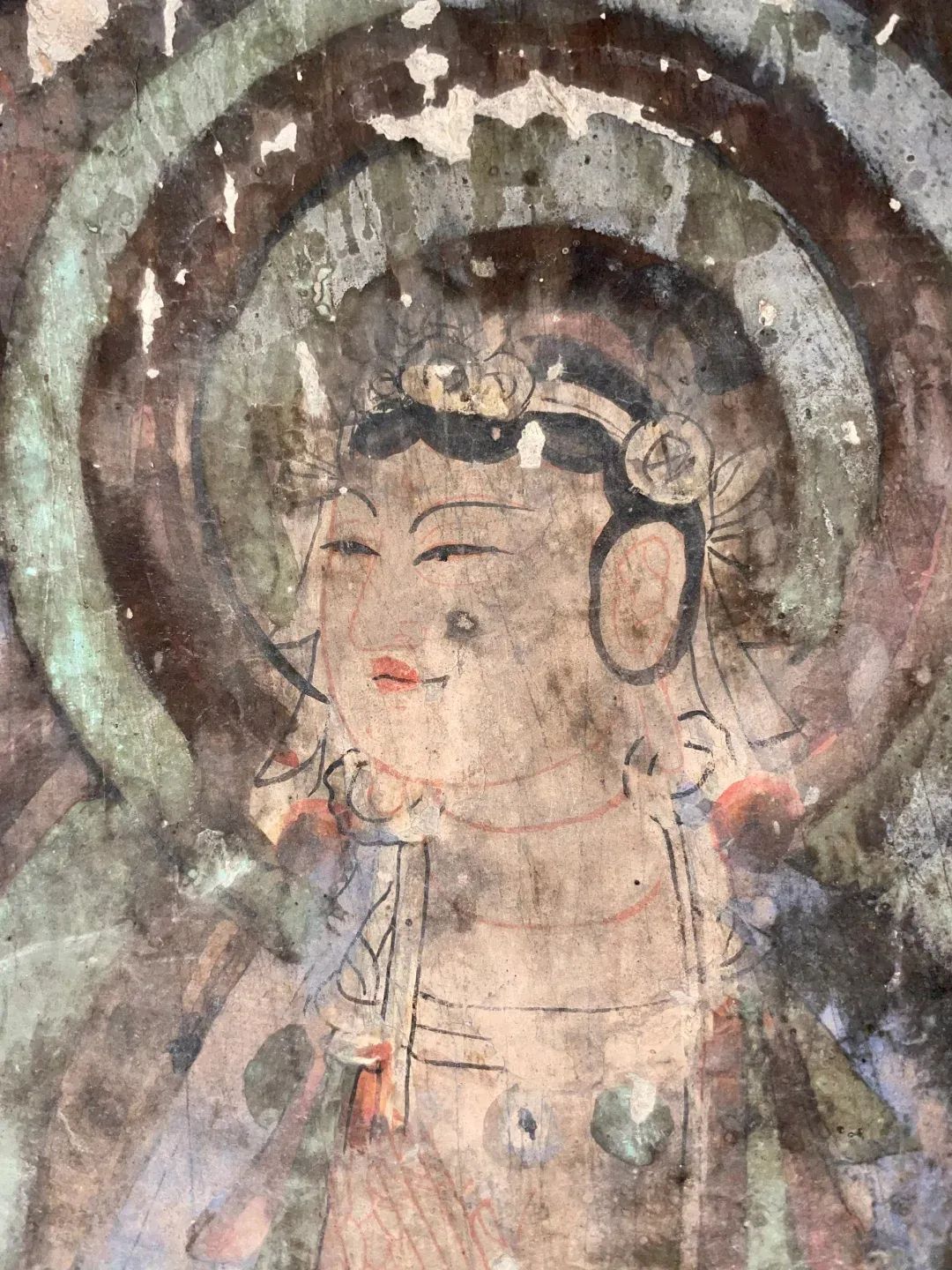 昌馬石窟第1、2、4窟表層西夏時(shí)期所繪壁畫(huà)的內(nèi)容,用色及菩薩的服裝等極接近敦煌莫高窟第328、327窟和榆林窟第17窟西夏壁畫(huà)。其用筆比較端莊拘謹(jǐn),不似唐代自由流暢;用色以赭紅、大綠為主;人物造像尤其是菩薩形象程式化,菩薩衣飾華麗復(fù)雜,但神態(tài)略顯呆板,不似唐代優(yōu)美生動(dòng)和神采煥發(fā);裝飾圖案繁縟化,這些都與敦煌莫高窟、瓜州榆林窟、肅北五個(gè)廟同時(shí)期的壁畫(huà)具有統(tǒng)一的時(shí)代風(fēng)格。