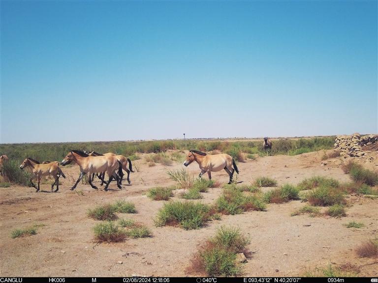 近日,甘肅敦煌西湖國(guó)家級(jí)自然保護(hù)區(qū)工作人員在保護(hù)區(qū)監(jiān)測(cè)數(shù)據(jù)中發(fā)現(xiàn)了令人驚嘆的一幕:普氏野馬與野駱駝同框。