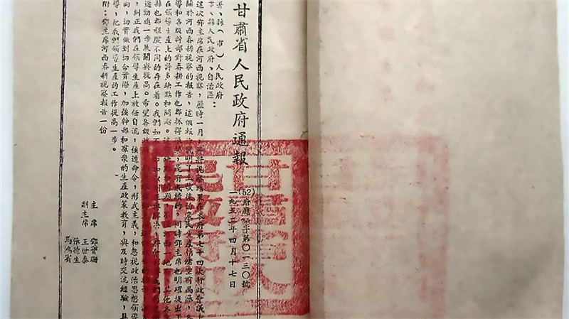 1950年1月8日,鄧寶珊正式就任甘肅省人民政府主席和省長。他感到責任重大,也對甘肅的發(fā)展充滿了希望。他經常到下面體察民情,足跡遍布全省的各個縣。在不能通車的偏遠地方,就是步行幾小時也要走到下面的村縣。1952年3月2日,鄧寶珊主席一行從蘭州出發(fā),對武威和酒泉兩個專區(qū)展開視察,歷時一個多月,走訪了永登、古浪、山丹、張掖、敦煌等13個縣。山丹縣1950年劃歸武威專區(qū),1955年后復歸張掖專區(qū)。