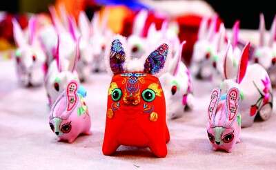 慶陽香包兔元素?cái)[件。 盤小美攝