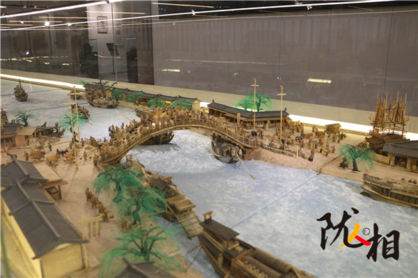 劉金祿歷時(shí)25年創(chuàng)作的白牦牛角微雕版《清明上河圖》,長16米,寬1.6米,共微雕人物1460名,動物300余頭、房間400余間、大小船只30余艘、牛馬車輛50余輛。小到杯盞酒蝶,大到雕梁畫棟,都有生動刻畫,徹底將《清明上河圖》由平面畫作搬上了立體展臺。