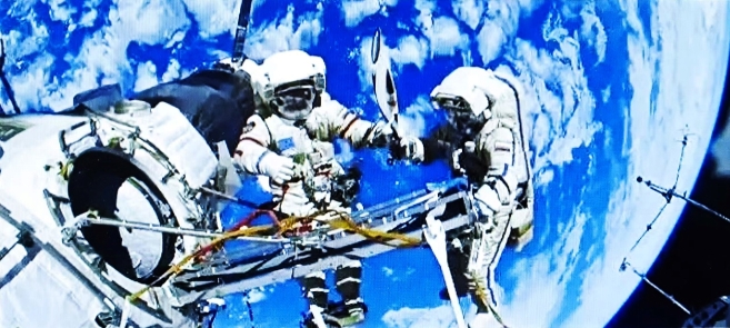 華夏宏猷,探秘穹蒼,志壯九霄。望神舟騰躍,昂然破霧;星河競渡,自若凌濤。萬仞逍遙,千鈞穩(wěn)負(fù),眾慧凝心膽氣豪。長天里,看巡行軌跡,陣布云高。