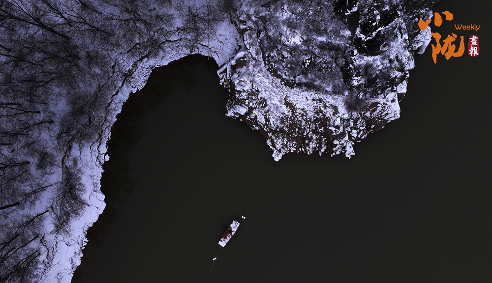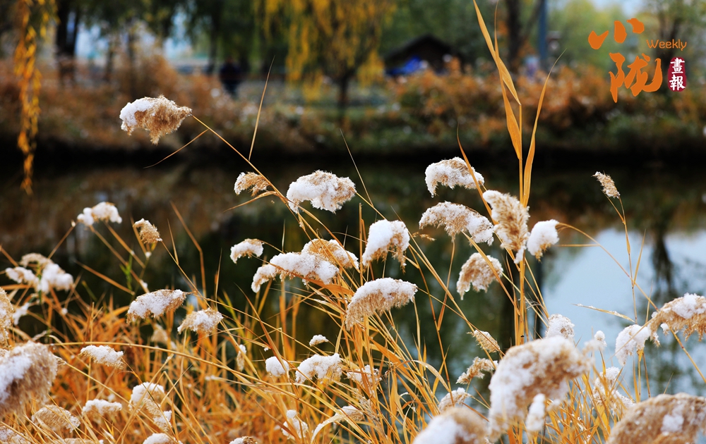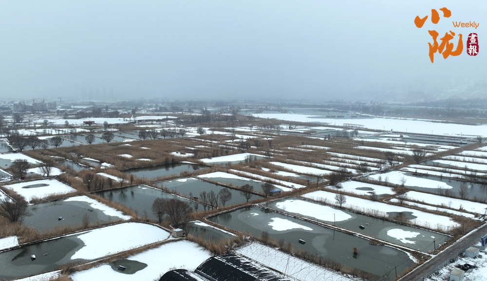 宛如江南水鄉(xiāng)的太極島在雪的映襯下,魚塘四周暗黃色的蘆葦枯敗中藏神韻,它們披著白雪,頂著寒風,為大地增添了一抹溫暖的色彩。