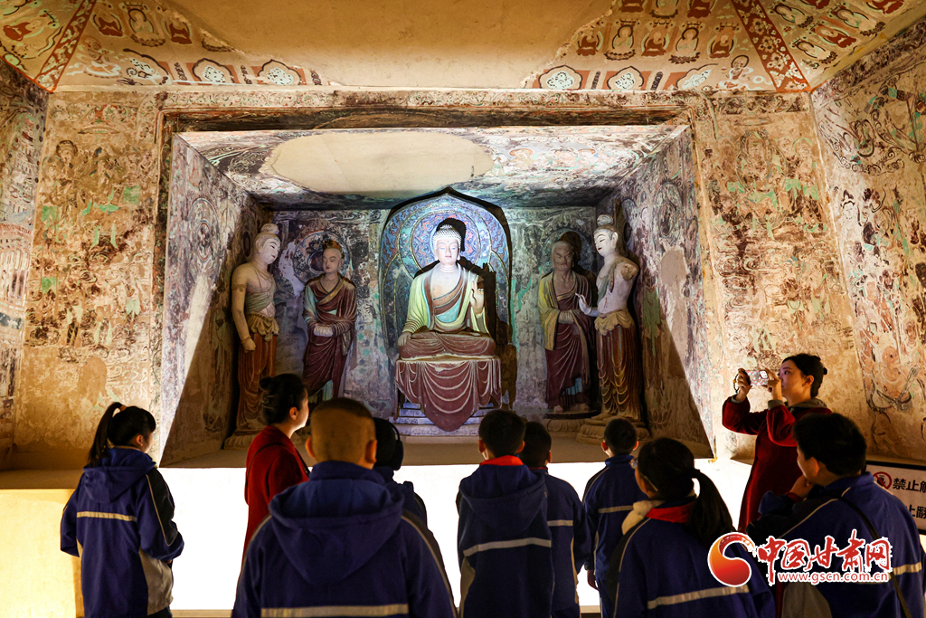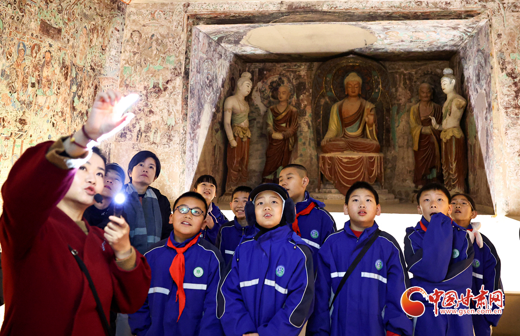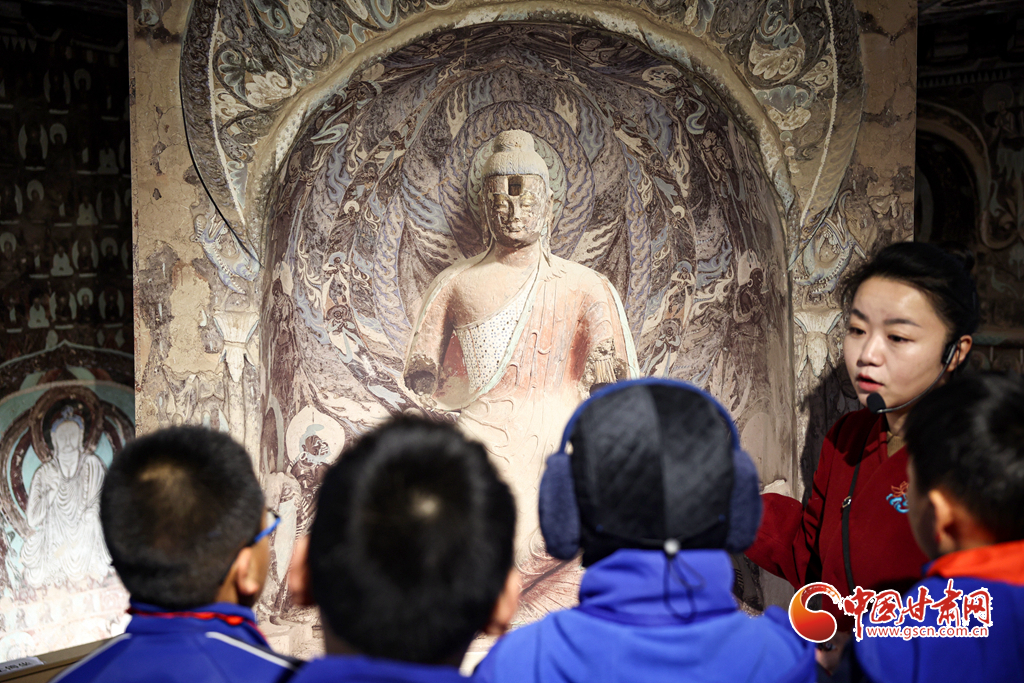 12月29日,蘭州市城關區(qū)安樂村小學學生在家人的陪同下來到敦煌研究院蘭州分院敦煌藝術館,欣賞“覺色敦煌 莫高精神”敦煌石窟藝術展,在周末時光近距離感受敦煌文化藝術的魅力。