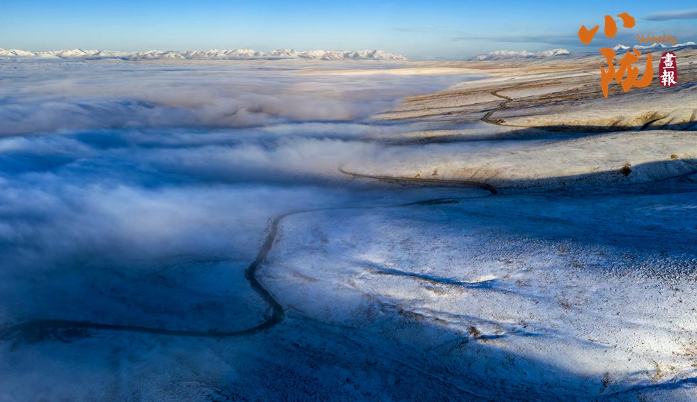 祁連山下,被譽為“空中草原”的康樂草原段披上了銀裝,皓然一色,如詩如畫。