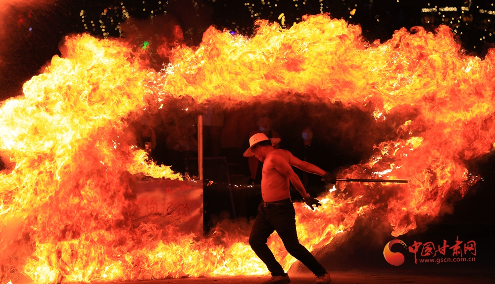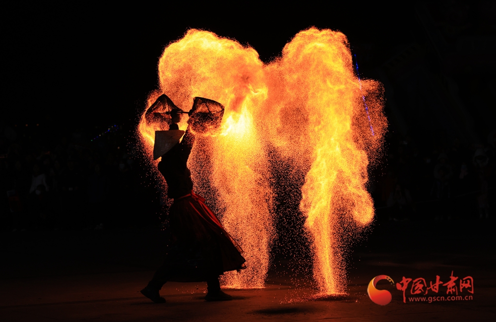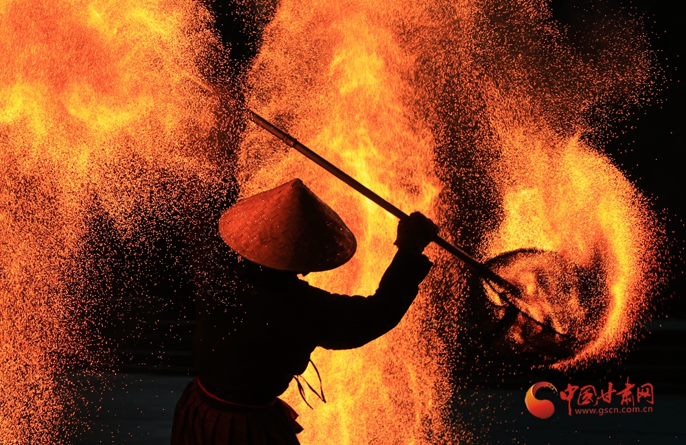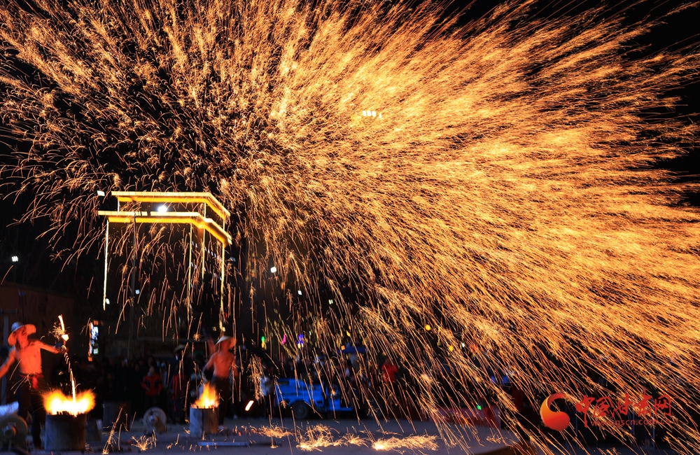 春節(jié)期間,在臨夏永靖劉家峽太極廣場上進行的打鐵花和火壺表演吸引了不少觀眾,營造了濃濃的節(jié)日氛圍。