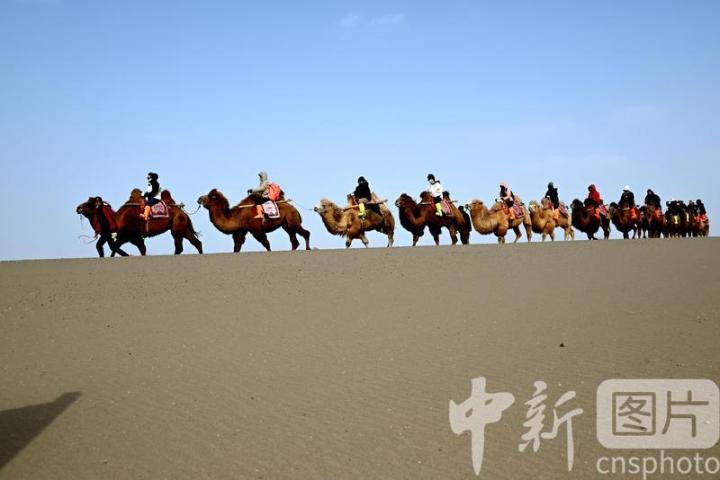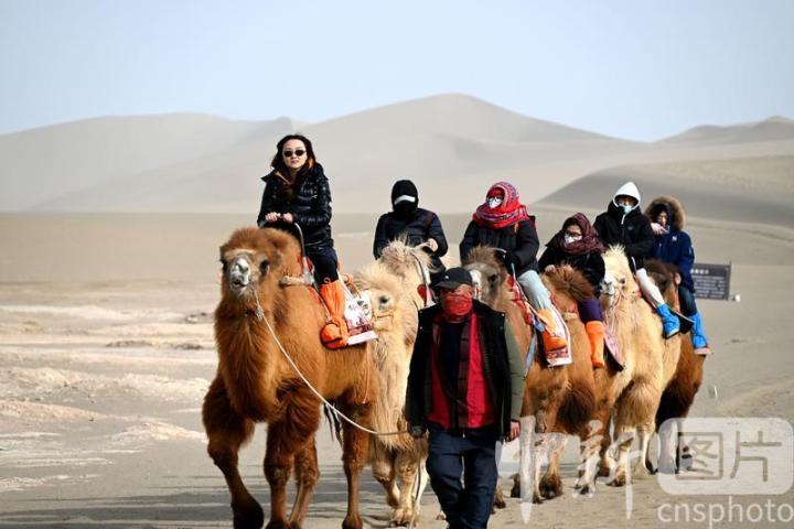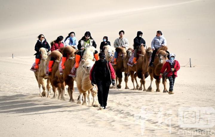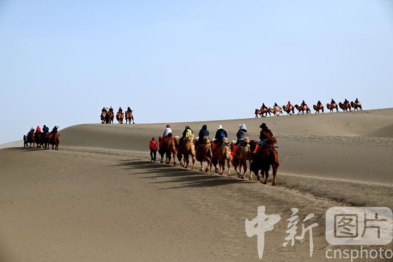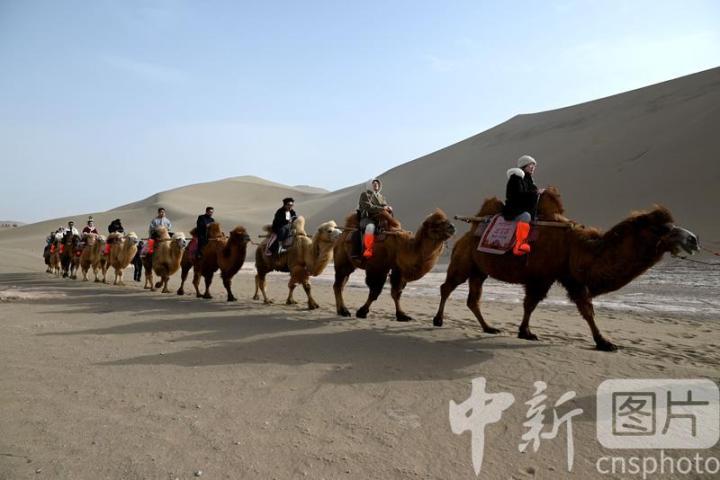 2025年3月2日,游客在甘肅省敦煌市鳴沙山月牙泉景區(qū)游覽。從3月1日開始,至3月31日,甘肅省敦煌市鳴沙山月牙泉景區(qū)、世界文化遺產(chǎn)玉門關遺址、敦煌雅丹世界地質(zhì)公園三大市屬景區(qū)推出門票半價優(yōu)惠政策,吸引游客走進敦煌,欣賞大漠風光,體驗絲路風情。中新社發(fā) 張曉亮 攝