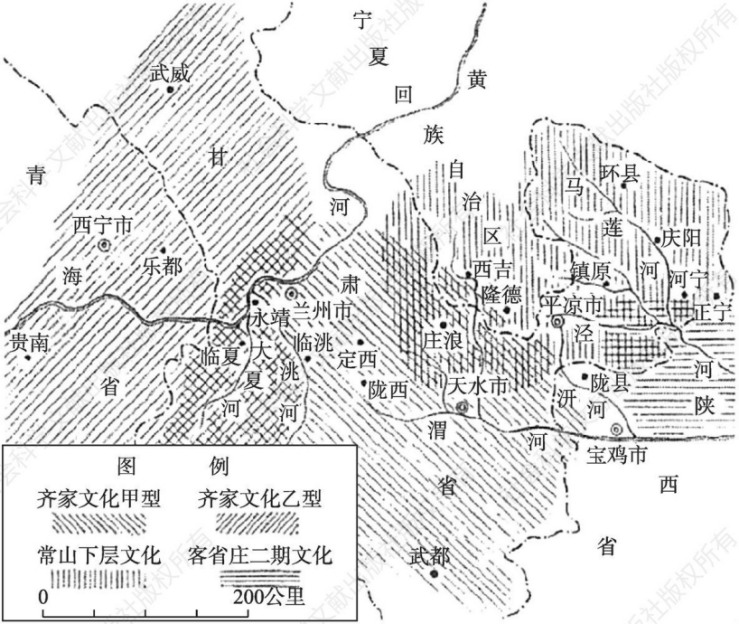 常山下層文化是黃河中上游新石器時代晚期的重要文化遺存,最早發(fā)現(xiàn)于甘肅省鎮(zhèn)原縣常山遺址而得名。胡謙盈先生認為其主要分布在西北黃土高原東部的涇、渭兩河流域上游區(qū)域,其分布范圍東至子午嶺西側(cè),西至鳥鼠山東側(cè)的渭源縣,北至寧夏回族自治區(qū)南部,南至陜西省彬縣及甘肅天水地區(qū)南部。學界普遍認為,它是由仰韶文化晚期發(fā)展而來,同時也是齊家文化的重要源頭之一。依據(jù)碳14測定,其年代約為公元前2930±180年,相對年代晚于仰韶文化,早于先周文化,是西北新石器時代晚期的文化紐帶,在研究中國史前文化演進中占據(jù)重要地位。