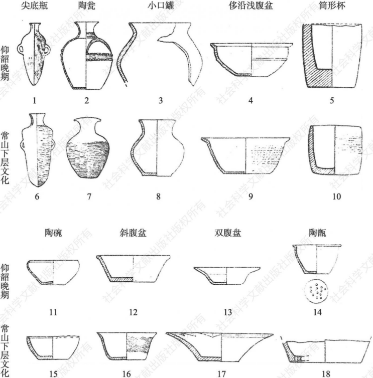 仰韶文化和常山下層文化陶器對比圖