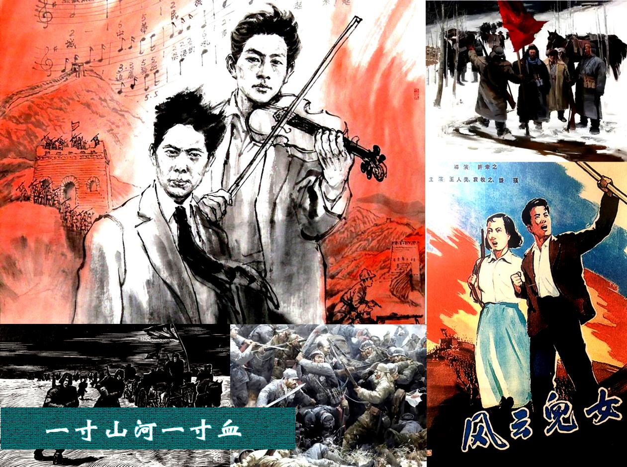 筆者在相關(guān)閱讀中接觸到許多《義勇軍進(jìn)行曲》創(chuàng)作同期的歌曲、誓詞、通電等史料。見到了《義勇軍誓詞歌》《血盟救國(guó)軍軍歌》等一些堪稱《義勇軍進(jìn)行曲》雛形的藍(lán)本。當(dāng)讀到其中“起來!起來!不愿當(dāng)亡國(guó)奴的人!……用我們身體筑起長(zhǎng)城。……前進(jìn)??!前進(jìn)!向前進(jìn)!殺!殺!殺!”;又如“起來!不愿當(dāng)亡國(guó)奴的人們,用我們的血肉喚起全國(guó)民眾……中華民族到了最危險(xiǎn)的時(shí)候,起來!起來!”等歌詞時(shí),胸中激情難抑。這些同仇敵愾的時(shí)代強(qiáng)音最終集成于田漢、聶耳一九三五年四月完成的電影《風(fēng)云兒女》主題曲《義勇軍進(jìn)行曲》。當(dāng)年五月,隨著電影公映,《義勇軍進(jìn)行曲》迅速傳遍中華大地,成為鼓舞全國(guó)人民抵抗日本侵略的戰(zhàn)斗號(hào)角,后來又被確定為新中國(guó)的國(guó)歌并寫入憲法。筆者撫今追昔,萬千感慨,思如泉涌,寫就兩首《七律》,志念《義勇軍進(jìn)行曲》九十周年。
