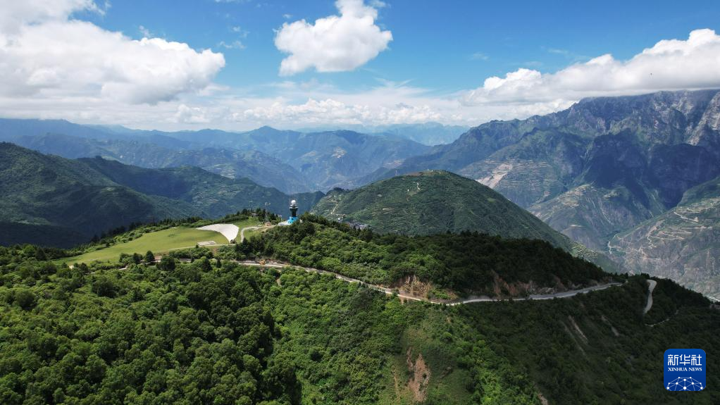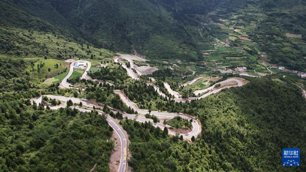這是7月12日拍攝的舟曲“簪花之路”風(fēng)景廊道沿線(xiàn)風(fēng)光(無(wú)人機(jī)照片)。新華社記者 陳斌 攝