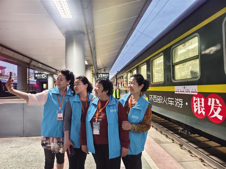 隨著人們生活水平的提高,旅游不再僅僅是走馬觀花式的打卡,慢旅深游逐漸成為一種潮流。對(duì)于老年群體來說,他們更希望在旅途中悠閑地感受風(fēng)景與文化,而不是疲于奔波。蘭鐵國旅公司將鐵路交通與文化旅游深度融合,打破了傳統(tǒng)旅游的模式。列車不再是單一的交通工具,而是成為了旅游體驗(yàn)的一部分。通過整合資源,“環(huán)西部火車游·崆峒號(hào)”構(gòu)建了“列車+旅游團(tuán)+景區(qū)+酒店+民俗文化+特產(chǎn)”的高性價(jià)比旅游產(chǎn)品模式,從游客上車的那一刻起,吃、住、行、游、購、娛都被安排得妥妥當(dāng)當(dāng),真正實(shí)現(xiàn)了“一站式”服務(wù)。在蘭州站,老年游客享有綠色通道、專屬候車區(qū)和專屬標(biāo)識(shí)牌,檢票流程簡(jiǎn)化,登車更加順暢。列車上,列車中間兩節(jié)車廂被改造成多功能娛樂車廂,配備卡拉OK、茶吧、水吧、書吧、棋牌桌等設(shè)施。全列鋪設(shè)防滑地毯,24小時(shí)不強(qiáng)制斷電熄燈,衛(wèi)生間等重點(diǎn)區(qū)域增加巡查頻次。
