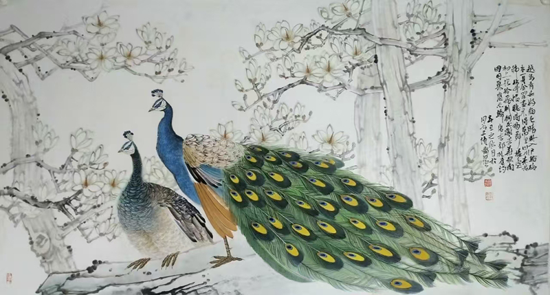 近年來,王自強(qiáng)的創(chuàng)作逐漸從具象走向意象。他嘗試將工筆畫的細(xì)膩與隸書的厚重結(jié)合,在《荷塘清韻》等作品中,荷葉的墨色層次與書法的線條韻律相互映襯,形成“書畫同源”的藝術(shù)境界,這種對書法藝術(shù)的探索精神不僅得到業(yè)界認(rèn)可,而且得到了社會的廣泛認(rèn)同。