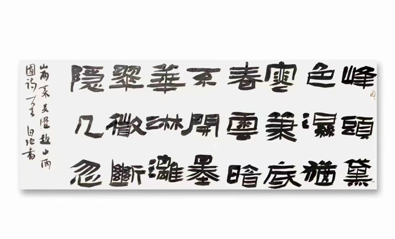 王自強(qiáng)的隸書植根于《西狹頌》的金石氣,又融入個人創(chuàng)新。他的作品《李白古風(fēng)其一》在2021年“中國書法·年展”中脫穎而出,以古樸厚重的筆法、靈動多變的章法,位列全國前51名,成為成縣首位躋身國家級書法大展的藝術(shù)家。2025年,他的隸書作品再次入選全國第五屆隸書作品展,在15214件投稿中脫穎而出,展現(xiàn)出對漢隸藝術(shù)的深刻理解與創(chuàng)新表達(dá)。