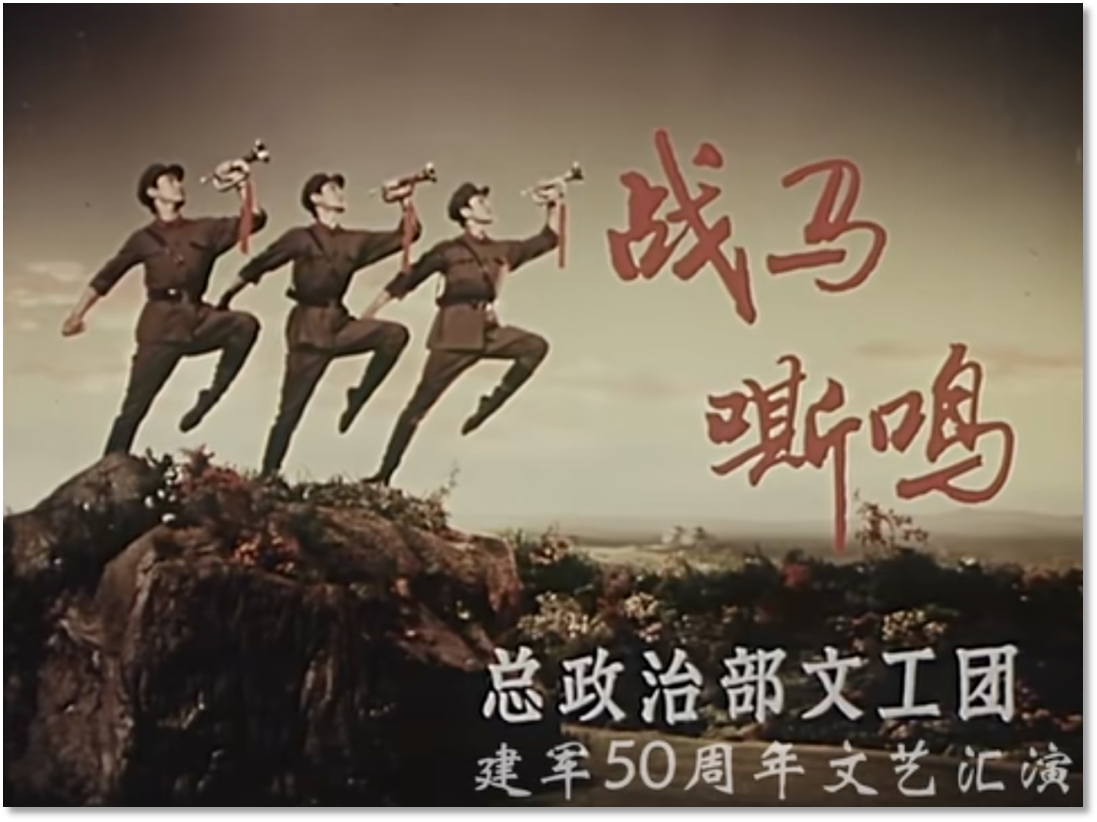 有趣的是,膠片并非被動(dòng)記錄,它悄然行使著選擇的權(quán)力——它決定了后世的人們將以何種視角、何種景別來(lái)銘記《戰(zhàn)馬嘶鳴》。在鏡頭中定格下來(lái)的膠片拷貝,就此定義了經(jīng)典的面貌。從舞臺(tái)到膠片,作品完成了一次關(guān)鍵的媒介化轉(zhuǎn)身,從一場(chǎng)限時(shí)演出,變身為一個(gè)時(shí)代的文化符號(hào)。這使軍藝精神在沒(méi)有數(shù)字媒體的時(shí)代,得以廣泛流傳和保存。