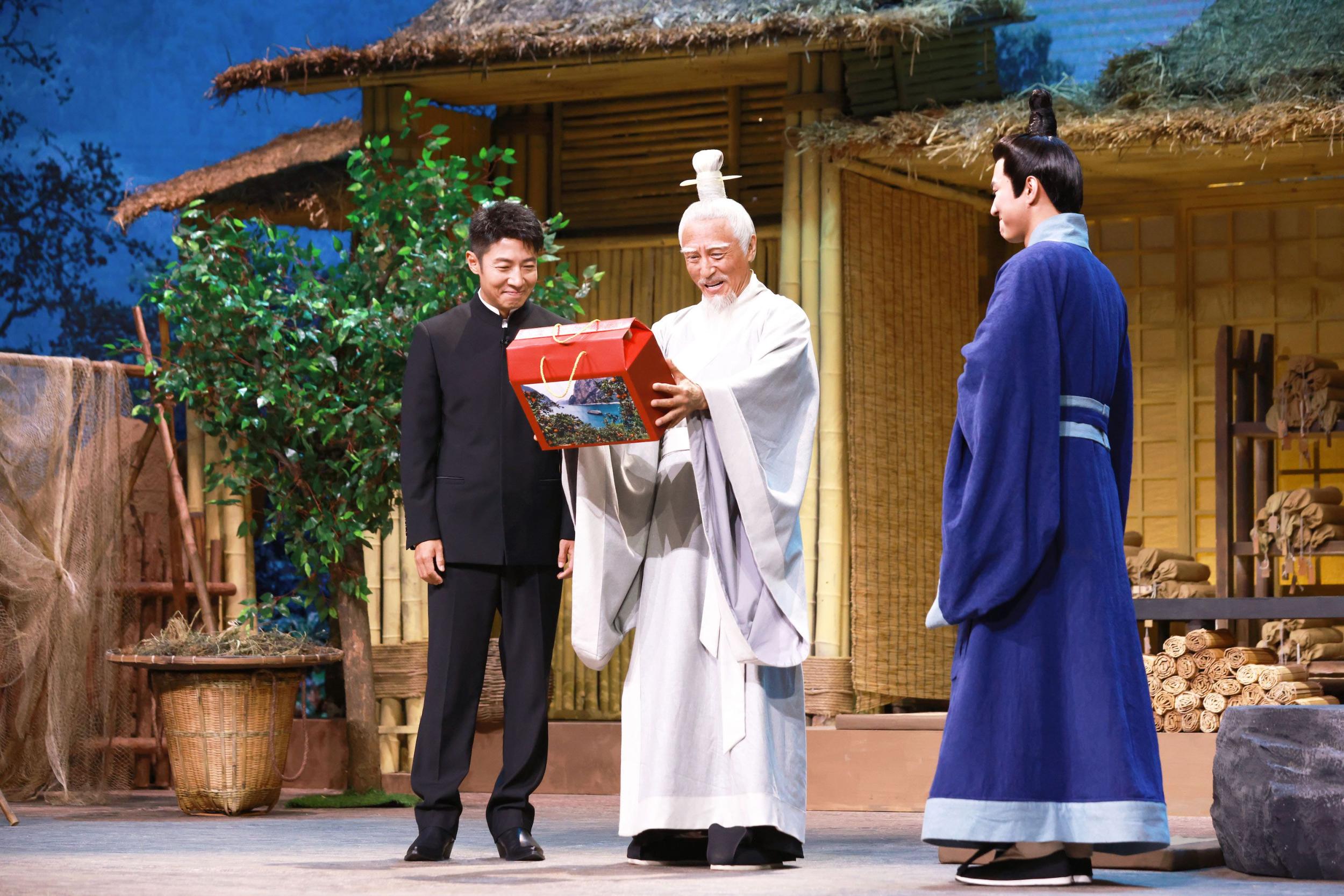 舞臺上,屈原對著聶海勝、劉伯明、湯洪波三名中國航天員連連揮手,他抑制不住內(nèi)心的激動:“路曼曼(漫漫)其修遠兮,吾將上下而求索。我看到了最浪漫的詩!我把詩寫在竹簡上,他們把詩寫在宇宙中!”