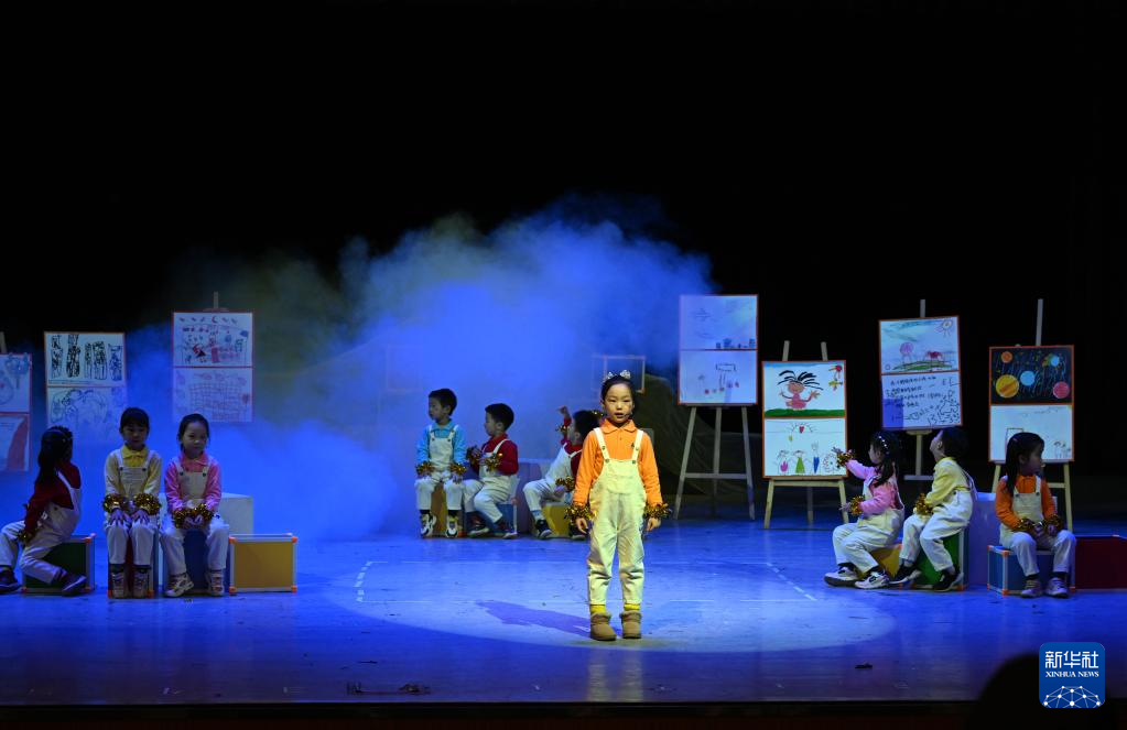 當(dāng)日,北京兒童藝術(shù)劇院語言與表達(dá)班在北京舉行匯報演出。孩子們通過戲劇課堂的啟發(fā),圍繞“幸福是什么”這一主題,以原創(chuàng)詩歌的形式開展表演。