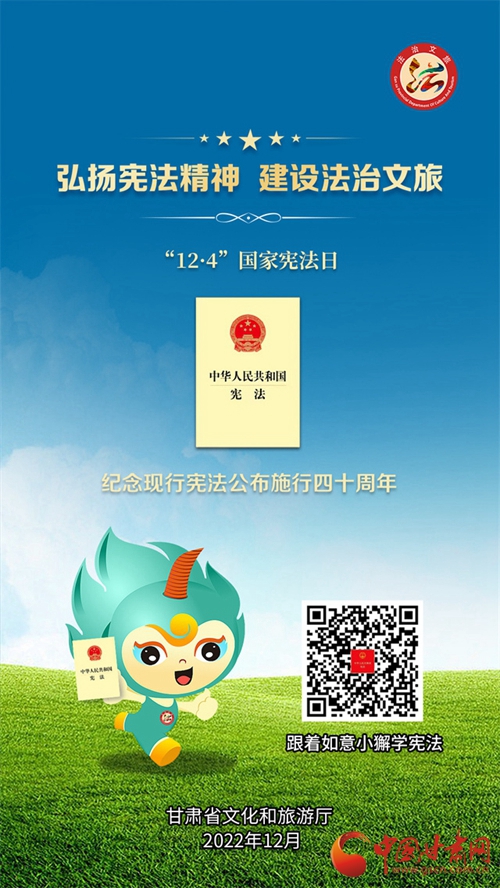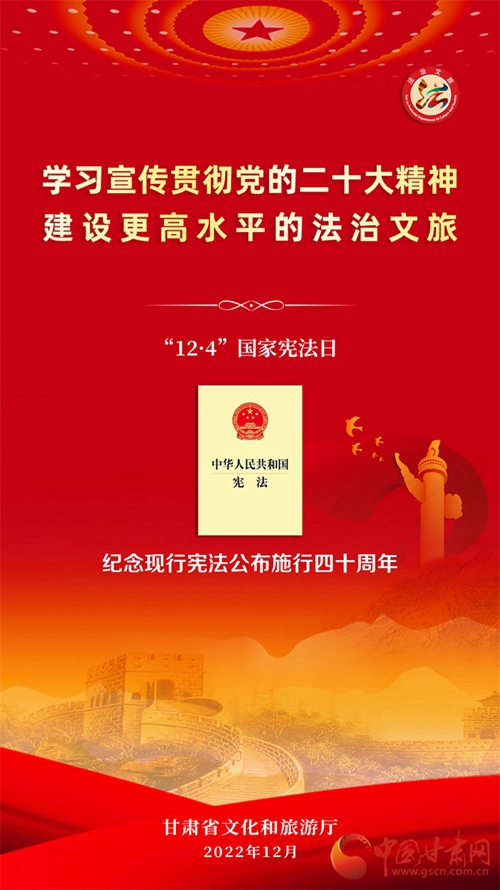中國(guó)甘肅網(wǎng)12月7日訊 (本網(wǎng)記者 張?zhí)m琴)自12月4日國(guó)家憲法日暨憲法宣傳周啟動(dòng)以來(lái),我省各地開(kāi)展了形式多樣的宣傳活動(dòng),為深入學(xué)習(xí)宣傳貫徹黨的二十大精神,不斷增強(qiáng)人民群眾法治意識(shí),形成全民維護(hù)憲法的濃厚氛圍,同時(shí)加強(qiáng)文化和旅游的法治宣傳教育,省文旅廳近日開(kāi)展了國(guó)家憲法日暨憲法宣傳周系列活動(dòng)。