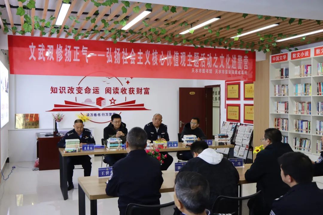 為大力營(yíng)造全體民輔警愛讀書、讀好書、善讀書的濃厚氛圍,4月24日,在全民讀書月之際,天水市公安局聯(lián)合市圖書館在天水強(qiáng)制隔離戒毒所開展“全民讀書月·文化進(jìn)警營(yíng)”活動(dòng)。