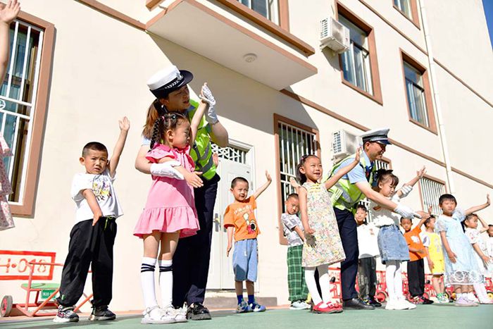 6月13日,臨澤縣公安局交警大隊法治宣傳民警走進(jìn)濱河幼兒園,通過現(xiàn)場授課、有獎競答、認(rèn)交通指示牌等寓教于樂的方式向幼兒們普及了道路交通標(biāo)識等常識,提高幼兒們的交通安全意識。新甘肅·甘肅法制報通訊員 安學(xué)海 攝