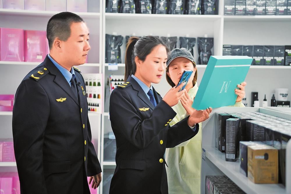 3月12日,在“3·15”國(guó)際消費(fèi)者權(quán)益日來臨之際,蘭州市市場(chǎng)監(jiān)督管理局配合甘肅省藥品監(jiān)督管理局對(duì)化妝品批發(fā)市場(chǎng)進(jìn)行檢查,指導(dǎo)企業(yè)規(guī)范經(jīng)營(yíng),維護(hù)消費(fèi)者權(quán)益。新甘肅·甘肅法治報(bào)記者王輝攝