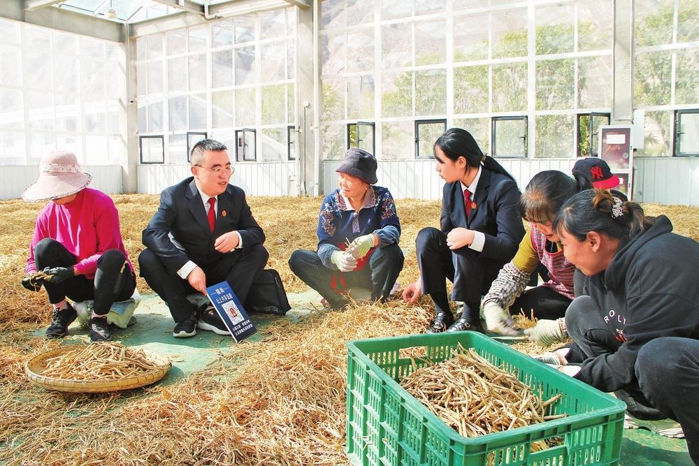 文縣法院安昌河法庭聚焦當(dāng)?shù)攸h參特色產(chǎn)業(yè),組織干警走進(jìn)企業(yè)開展司法服務(wù)(2024年10月22日拍攝)。 文縣法院供圖