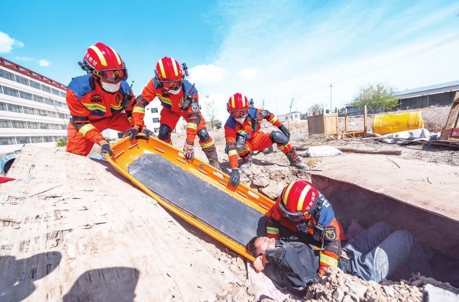 演練現(xiàn)場設(shè)置在民樂縣一處廢棄廠區(qū),精心搭建的模擬廢墟區(qū)真實還原了地震后的慘烈場景:斷裂的預(yù)制板下壓著被困者,傾倒的鋼架阻斷逃生路徑,熊熊燃燒的化工廠冒出濃煙……12個高難度救援科目輪番上演,每一處細節(jié)都直擊地震救援的核心挑戰(zhàn)。