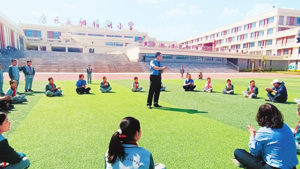 干警和孩子們游戲互動(dòng)。近日,康樂縣檢察院組織干警走進(jìn)康樂縣胭脂湖小學(xué),開展法治進(jìn)校園宣講活動(dòng),為未成年人健康成長構(gòu)筑堅(jiān)實(shí)司法屏障,用心用情守護(hù)“少年的你”。 新甘肅·甘肅法治報(bào)記者陳孝志攝