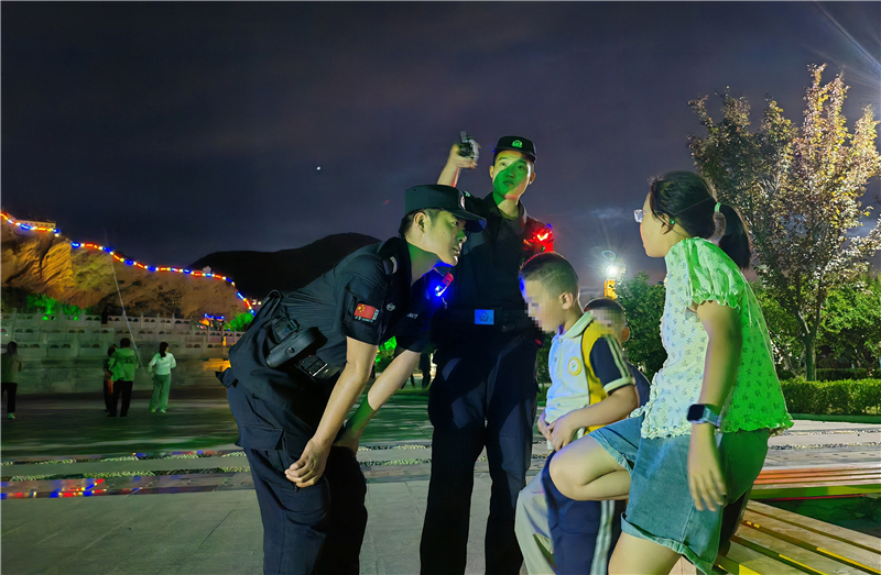“小朋友,天黑了要注意安全,不要靠近湖邊。”特巡警大隊將公園廣場等群眾休閑聚集區(qū)域作為巡邏防控的重點,民輔警在巡邏過程中一邊提醒玩耍的孩童注意安全,一邊向周邊群眾了解治安情況,同時主動詢問跳廣場舞的群眾是否存在噪音擾民等問題,及時化解潛在矛盾糾紛。“有你們巡邏,我們帶孩子出來玩都感到很安心!”在公園散步的群眾紛紛表示。