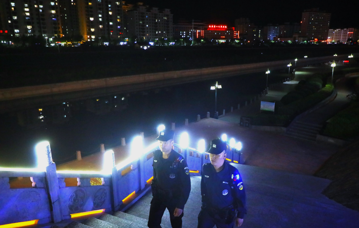 晚上九點(diǎn)的新城公園,水波在微光下輕輕蕩漾,本該靜謐的湖畔卻傳來孩童未歇的嬉鬧。幾個(gè)小小的身影,趴在湖邊手持小小的漁網(wǎng)在撈小魚,離幽暗的深水區(qū)不過幾步之遙。教導(dǎo)員趙啟和隊(duì)友悄然靠近,沒有刺耳的警笛,只有肩燈和手電筒在夜色中投下柔和的光暈。趙啟緩緩蹲下,視線與孩子們齊平。“嘿,小家伙······”他的聲音溫和卻帶著不容置疑的鄭重,“晚上不能在湖邊玩耍,更不能冒險(xiǎn)撈魚。白天讓大人帶你們過來玩,好不好?”肩燈的光映在孩子們好奇又略帶怯意的臉上。一個(gè)捏著螢火蟲的小男孩仰頭問:“警察叔叔,明天你還會(huì)在這里嗎?”趙啟笑了,笑容里帶著疲憊,也帶著堅(jiān)定:“當(dāng)然,白天叔叔也會(huì)巡邏,保護(hù)大家安全。”他目送著孩子們的小手被匆匆趕來的家長緊緊牽住,融入回家的燈火。