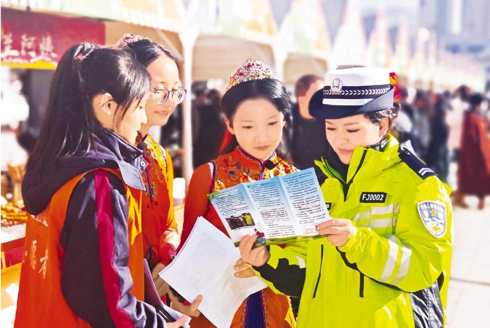 民警向群眾講解交通安全知識。11月27日,廣河縣公安局交管大隊民警走進(jìn)齊家文化廣場,利用戲曲進(jìn)鄉(xiāng)村文藝匯演的有利契機(jī)開展交通安全系列宣傳活動。新甘肅·甘肅法治報通訊員 汪洋 攝