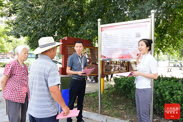 河北省邯鄲市永年區(qū)紀(jì)委監(jiān)委在村委會、醫(yī)院、公園等公眾場所懸掛公示牌,向群眾發(fā)放告知書,對群眾身邊腐敗和作風(fēng)問題整治內(nèi)容進行現(xiàn)場講解,提高群眾知曉率。(河北省邯鄲市永年區(qū)紀(jì)委監(jiān)委 朱照坤 攝)