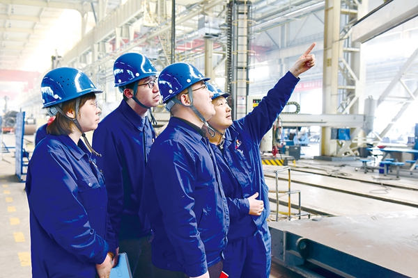 圖為蘭州蘭石集團有限公司紀檢監(jiān)察干部在煉化公司裝焊車間監(jiān)督重點項目推進情況。俞駿濤 攝