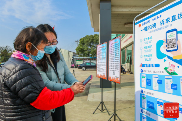 江蘇省張家港市紀(jì)委監(jiān)委聚焦做實(shí)監(jiān)督,創(chuàng)新信息化監(jiān)督平臺(tái)建設(shè),用“碼上監(jiān)督”推動(dòng)監(jiān)督下沉、落地見(jiàn)效,維護(hù)群眾利益。圖為該市紀(jì)檢監(jiān)察干部在南豐鎮(zhèn)永聯(lián)村指導(dǎo)群眾掃碼使用基層廉勤監(jiān)督平臺(tái)。(江蘇省張家港市紀(jì)委監(jiān)委 供羅燕 攝)