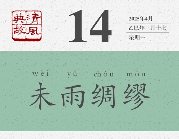 這是一首寓言詩。一般認(rèn)為,是周武王病故后,弟弟周公旦寫給周武王的兒子周成王的誡勉詩。時(shí)成王幼弱,周公旦以詩言志,以鳥為喻,表明自己對(duì)周成王的一片苦心,以及對(duì)國事的一片忠心。“迨天之未陰雨,徹彼桑土,綢繆牖戶”,便形象地表明了自己的一片苦心。后人遂以“未雨綢繆”為典,比喻凡事都應(yīng)提前做好準(zhǔn)備,以防事到臨頭難以應(yīng)對(duì)?!吨熳蛹矣?xùn)》:“宜未雨而綢繆,毋臨渴而掘井。”