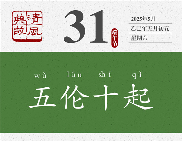 第五倫兄長的兒子經(jīng)常生病,他晚上要起來十次去照料,這說明他有私心。但是,他寧肯自己晚上起來十次去照料,也從未利用自己的職位或影響力讓別人代勞,這說明他公私分明。后人遂以“五倫十起”為典,形容于私有情分,于公有原則。李瀚《蒙求》:“劉整交質(zhì),五倫十起。”劉整,南朝齊梁時人,任職中軍參軍,為人刻薄而貪婪。有一次,侄子在他家里住了十二天,他便親自上門去向寡嫂討米、索償飯費(fèi),寡嫂出門未歸,他竟然拿走了寡嫂家的車帷以作抵押。