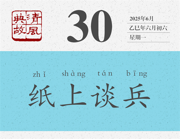 這就是歷史上著名的長平之戰(zhàn)。后人即根據(jù)趙括只會照搬兵書而不知變通之事,引申出“紙上談兵”之典,比喻只會紙上空談,而不能解決實際問題,或者只會空發(fā)議論,而得不到真正落實。清人張問陶詩《即事》:“紙上談兵壁上觀,立言先慮立功難。”