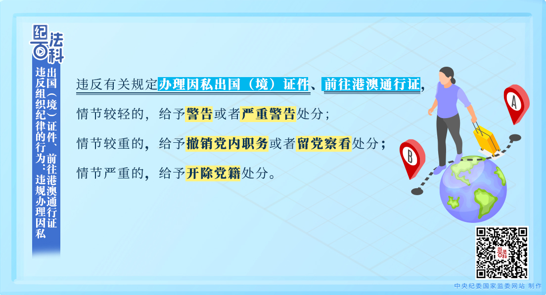 違反組織紀(jì)律的行為:違規(guī)辦理因私出國(境)證件、前往港澳通行證