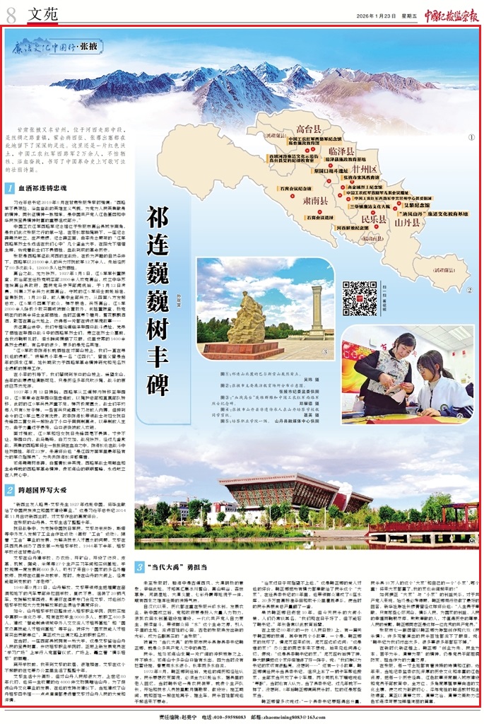 甘肅張掖又名甘州,位于河西走廊中段,是絲綢之路重鎮(zhèn),霍去病西征、張騫出塞都在此地留下了深深的足跡。這里還是一片紅色沃土,中國(guó)工農(nóng)紅軍西路軍2萬余人,不怕犧牲、浴血奮戰(zhàn),書寫了中國(guó)革命史上可歌可泣的壯麗詩(shī)篇。