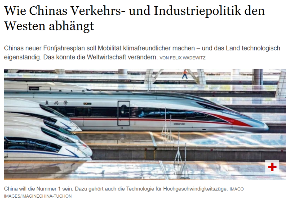 德國(guó)《每日鏡報(bào)》7日以《中國(guó)的交通運(yùn)輸和工業(yè)政策勝過(guò)西方》為題發(fā)表評(píng)論文章。文章贊揚(yáng)稱(chēng),中國(guó)的“十四五”規(guī)劃將讓交通運(yùn)輸行業(yè)更加環(huán)保,技術(shù)更加獨(dú)立自主,這可能會(huì)改變世界經(jīng)濟(jì)格局。