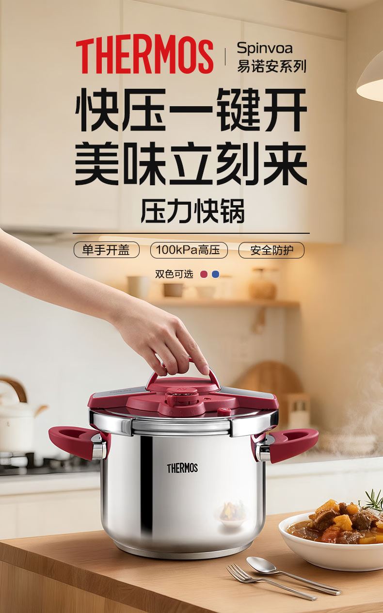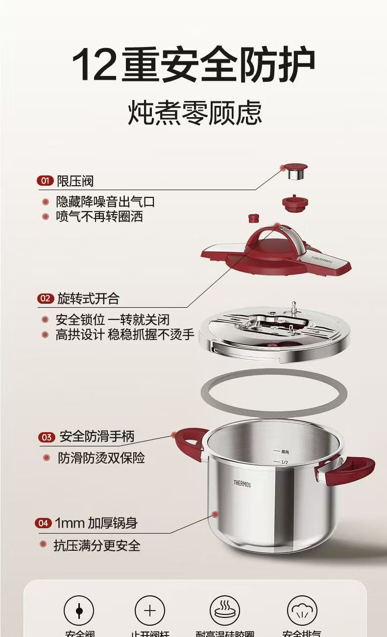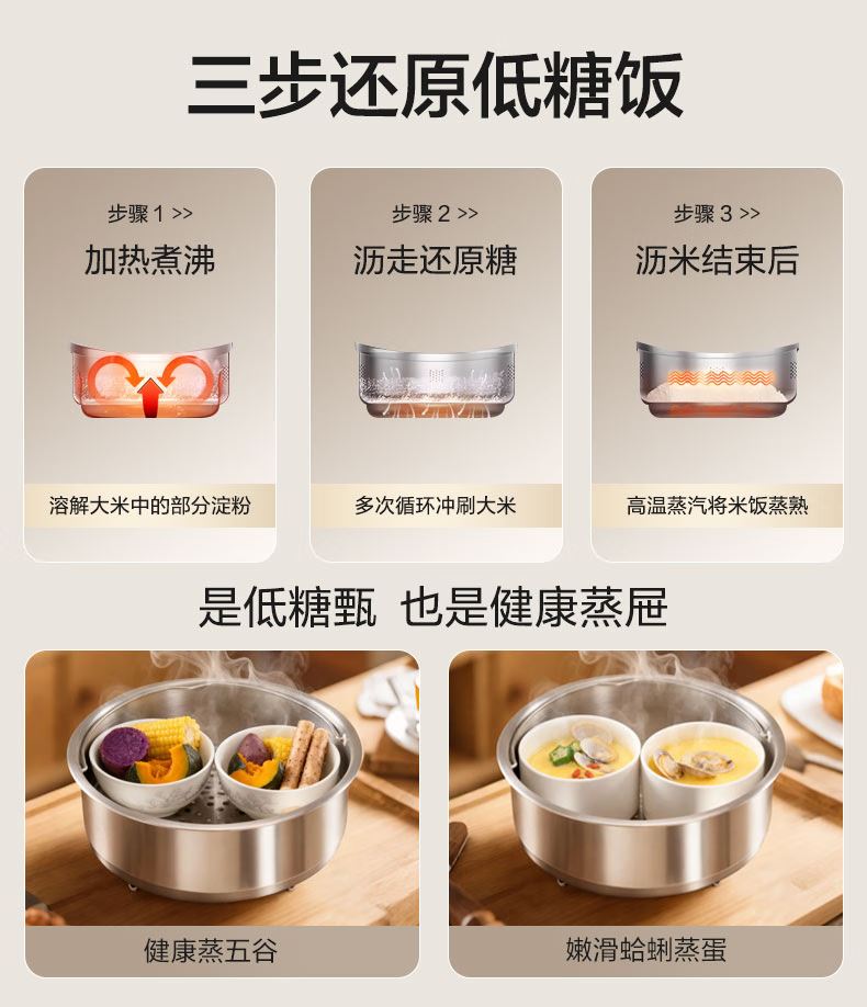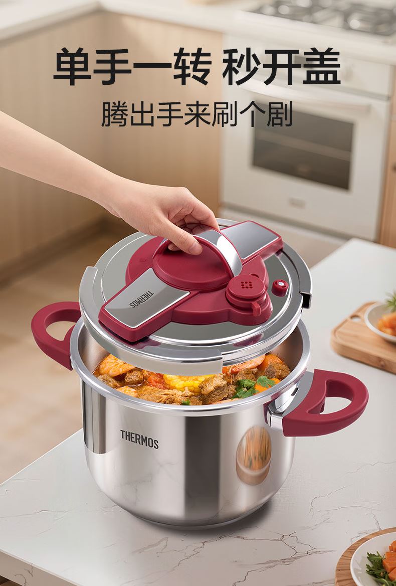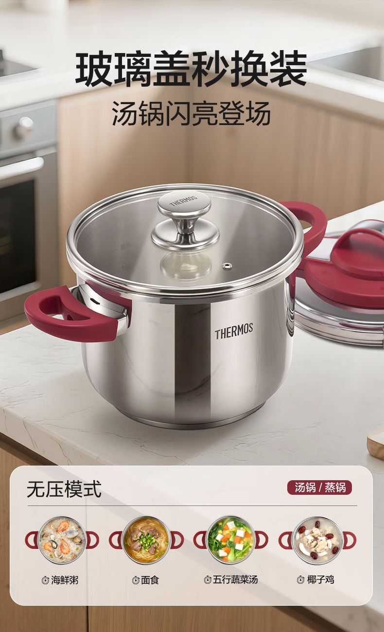 4、花樣雙蓋,高壓快熟入味,無壓蒸煮易熟