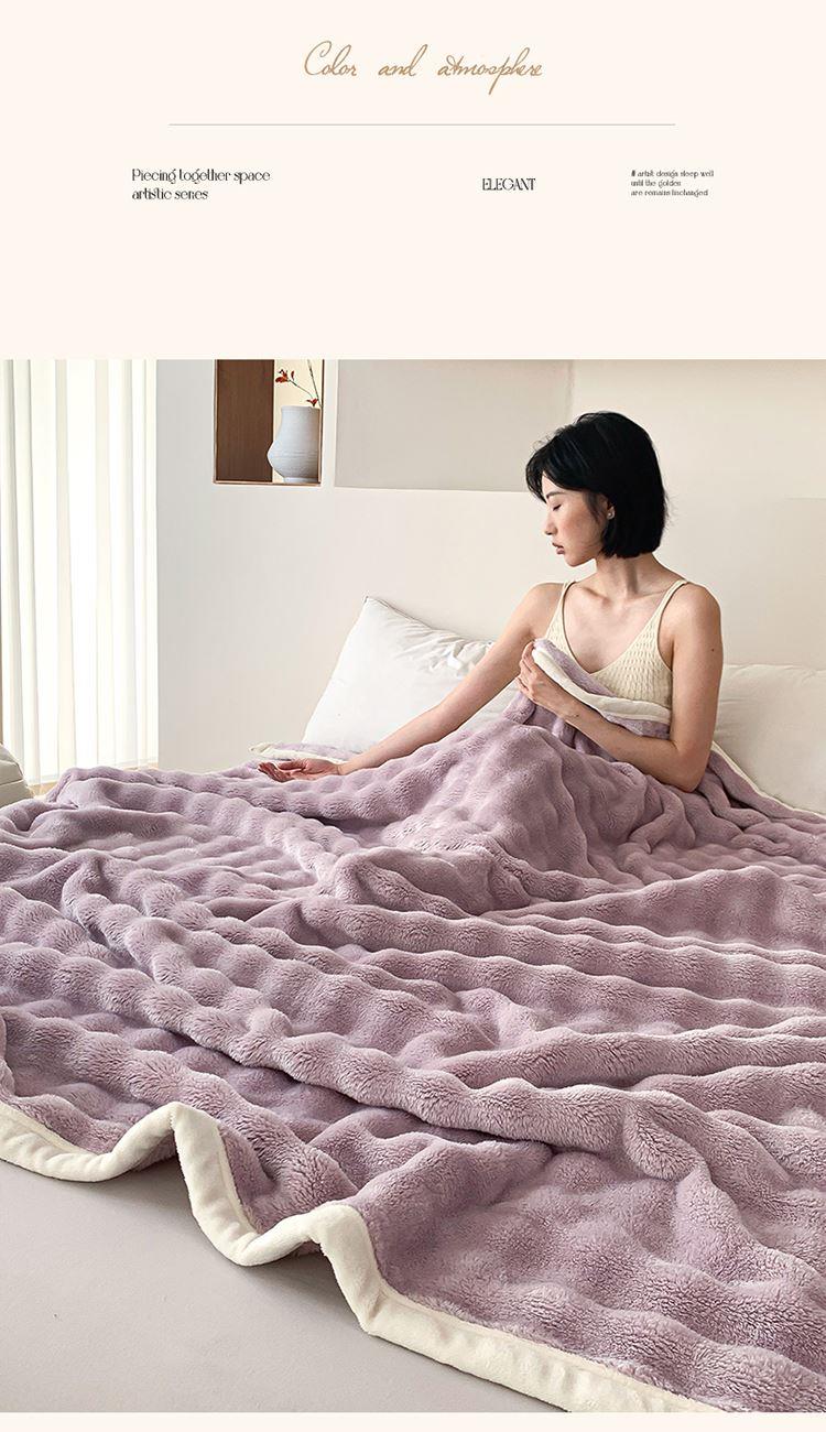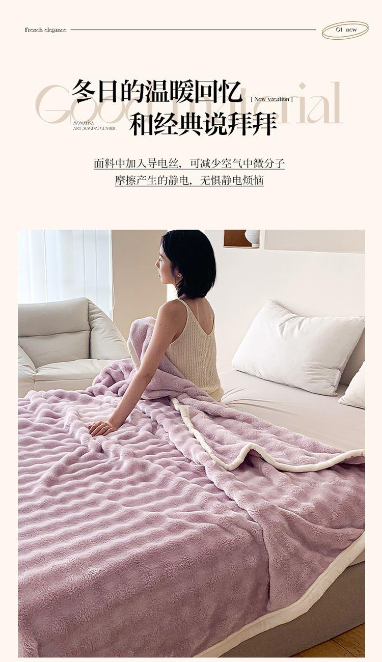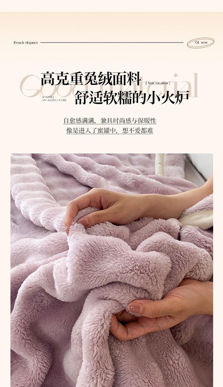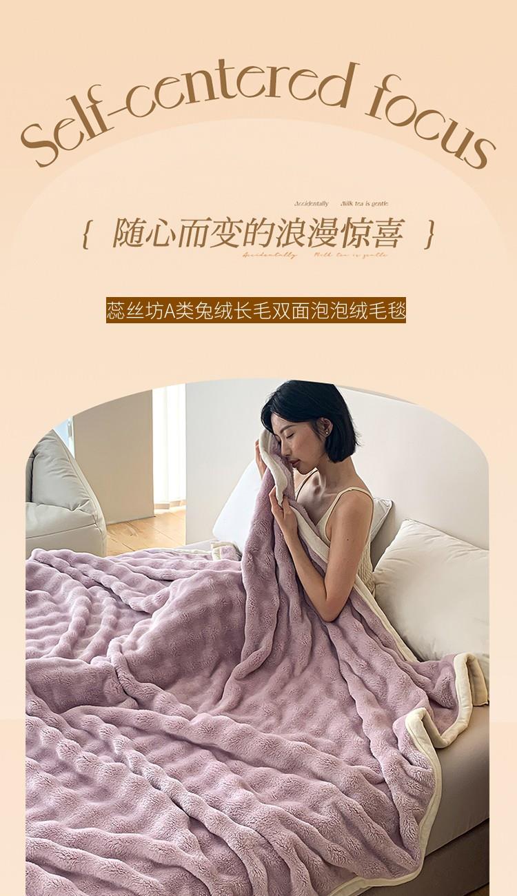 蕊絲坊家紡?fù)媒q長毛雙面泡泡絨毛毯180*200cm