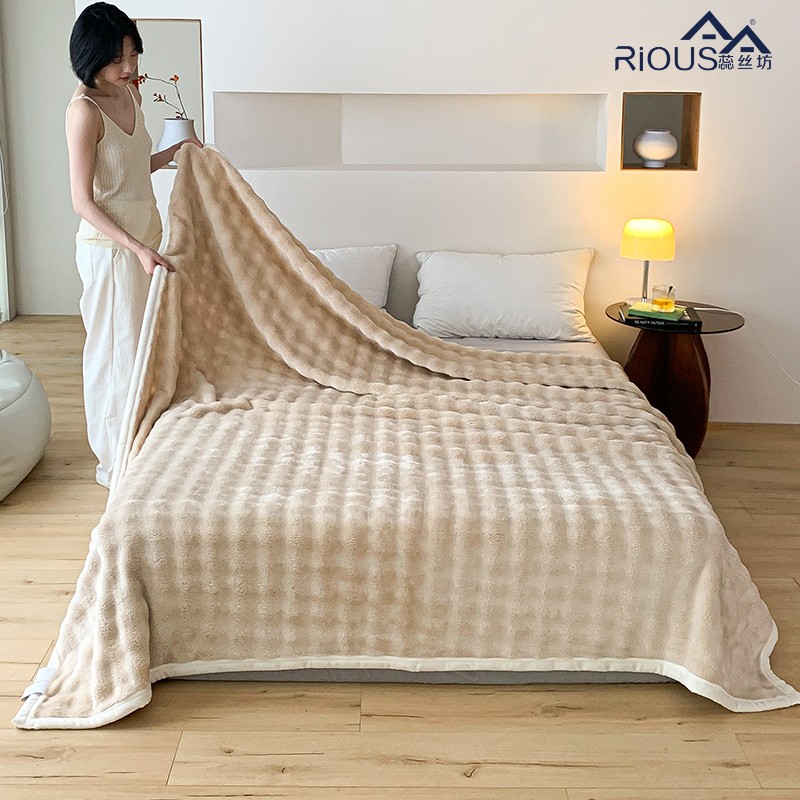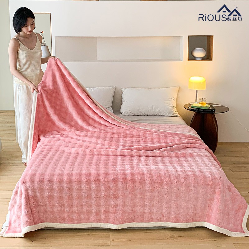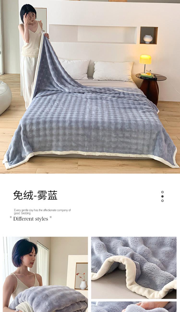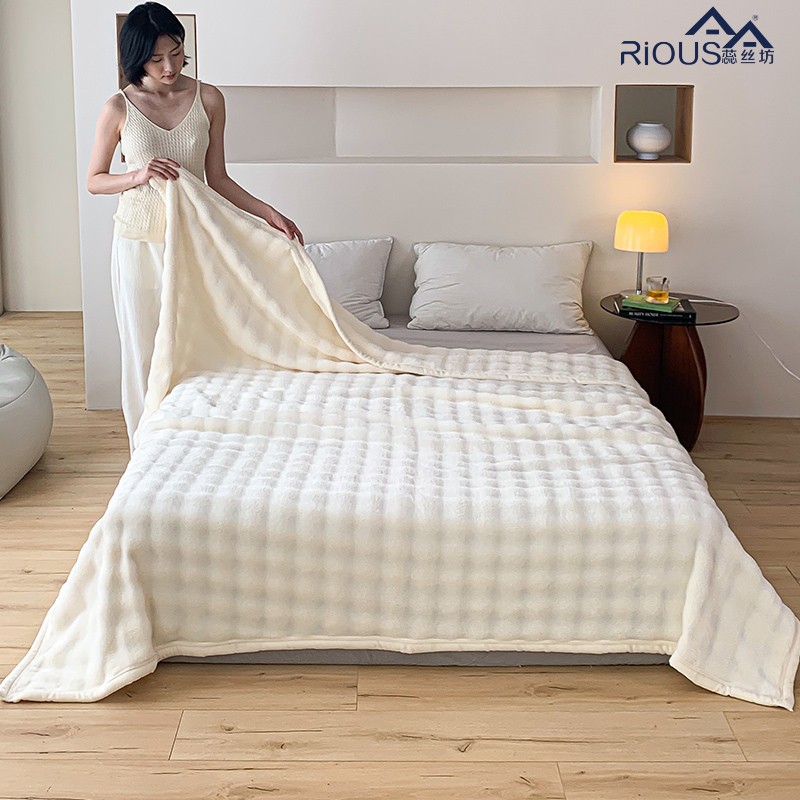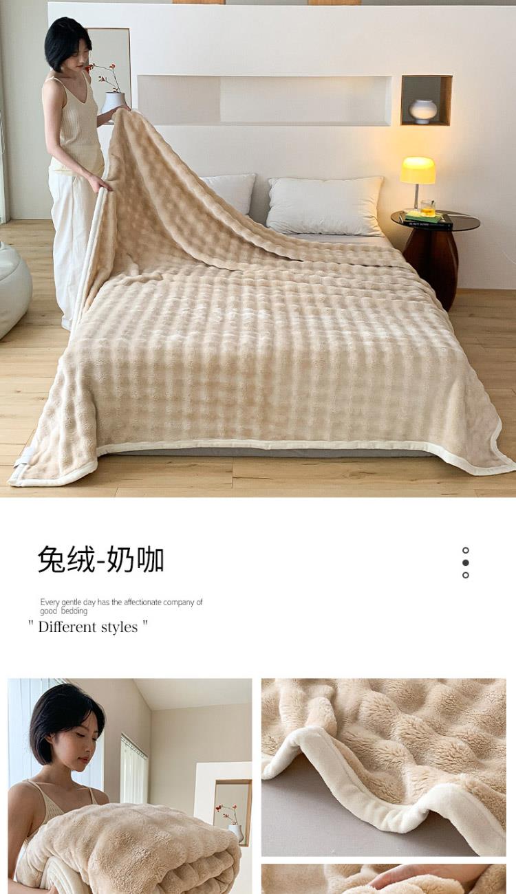 蕊絲坊家紡?fù)媒q長毛雙面泡泡絨毛毯180*200cm