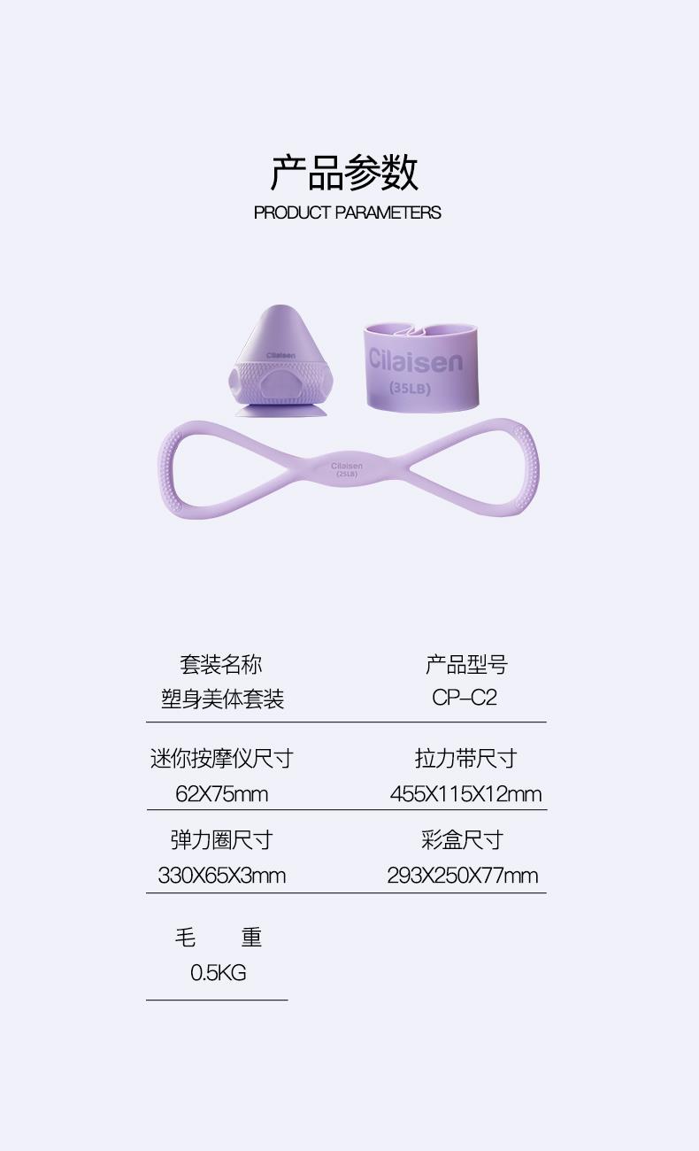 顏色:紫色 迷你按摩儀尺寸:62*75mm 拉力帶尺寸:455*115*12mm 彈力圈尺寸:330*62*3mm 產(chǎn)品毛重:0.4kg 包裝清單:迷你按摩儀x1,拉力帶x1,彈力圈x1