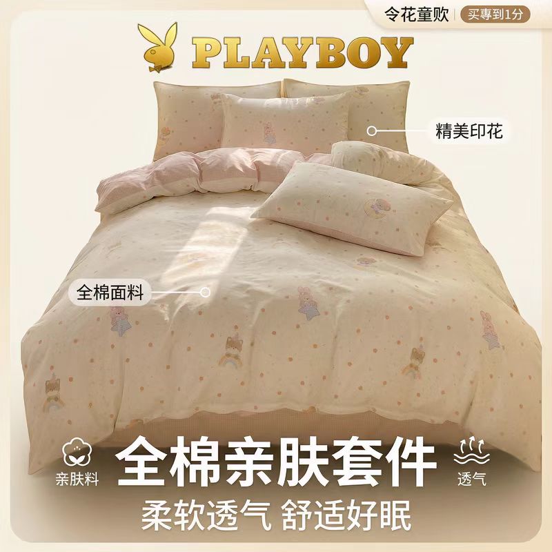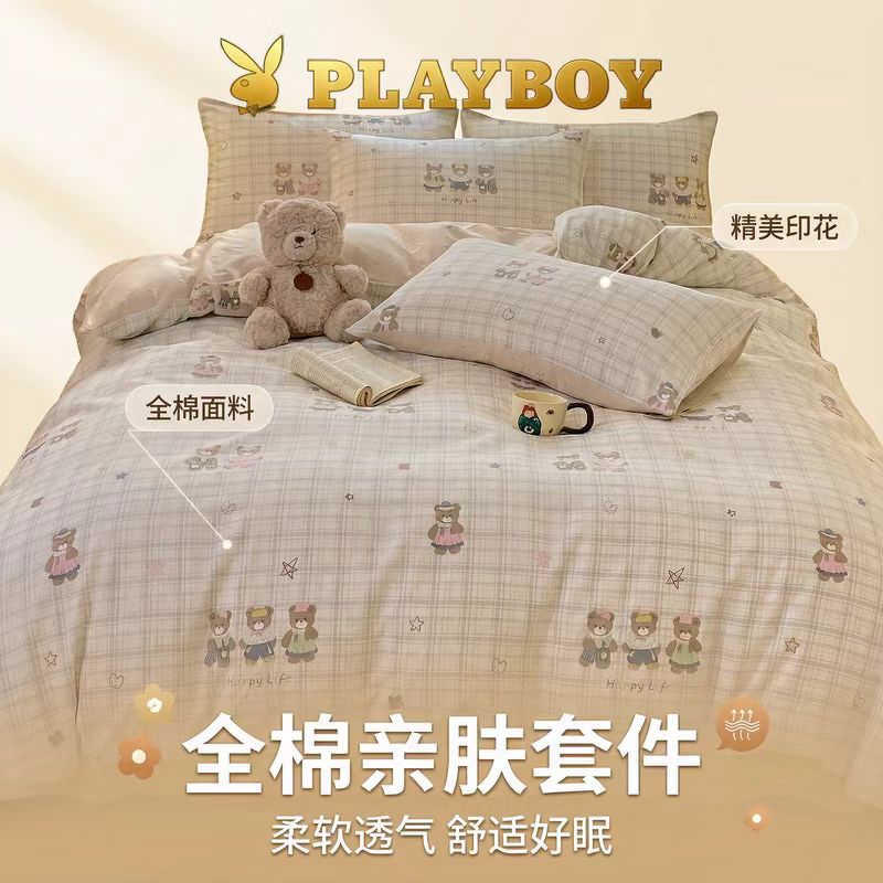花花公子-家紡-純棉印花四件套柔軟透氣 花花公子-家紡-純棉印花四件套柔軟透氣