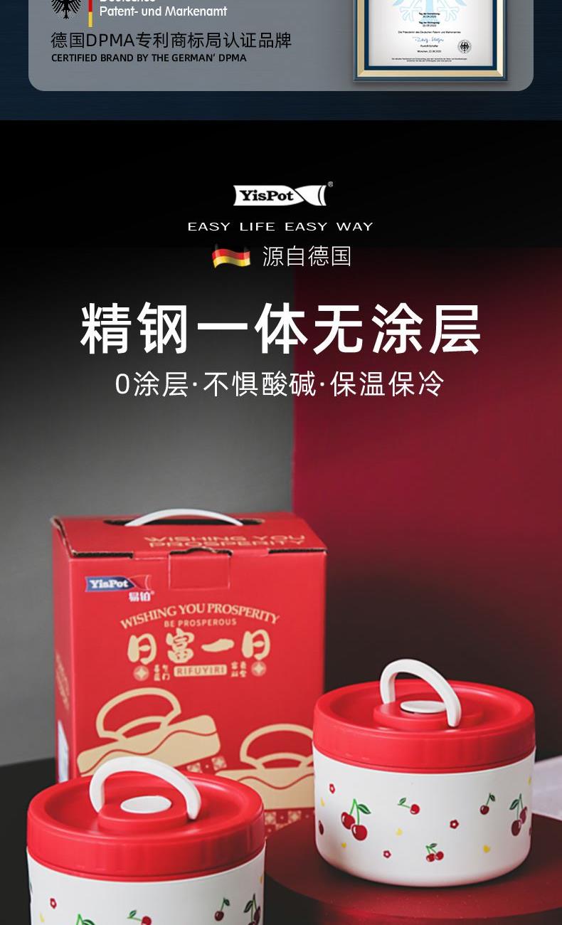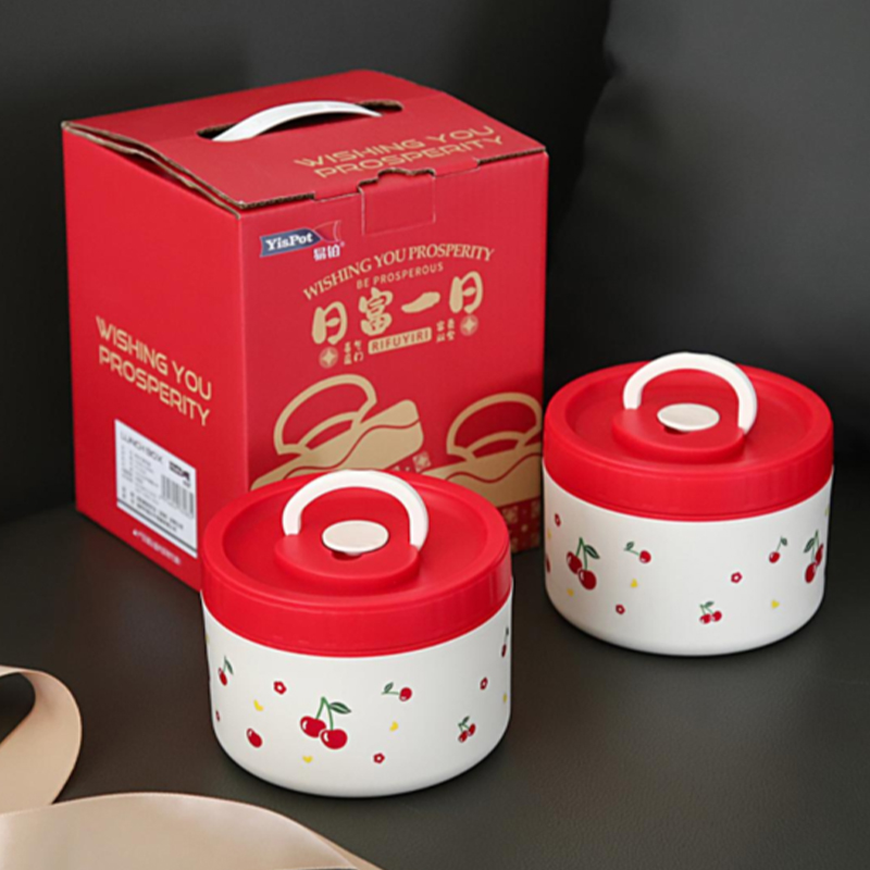 易鉑櫻桃紅飯盒兩件套YP-2316年底開(kāi)門紅促銷