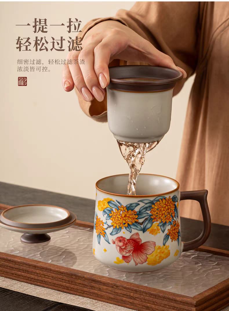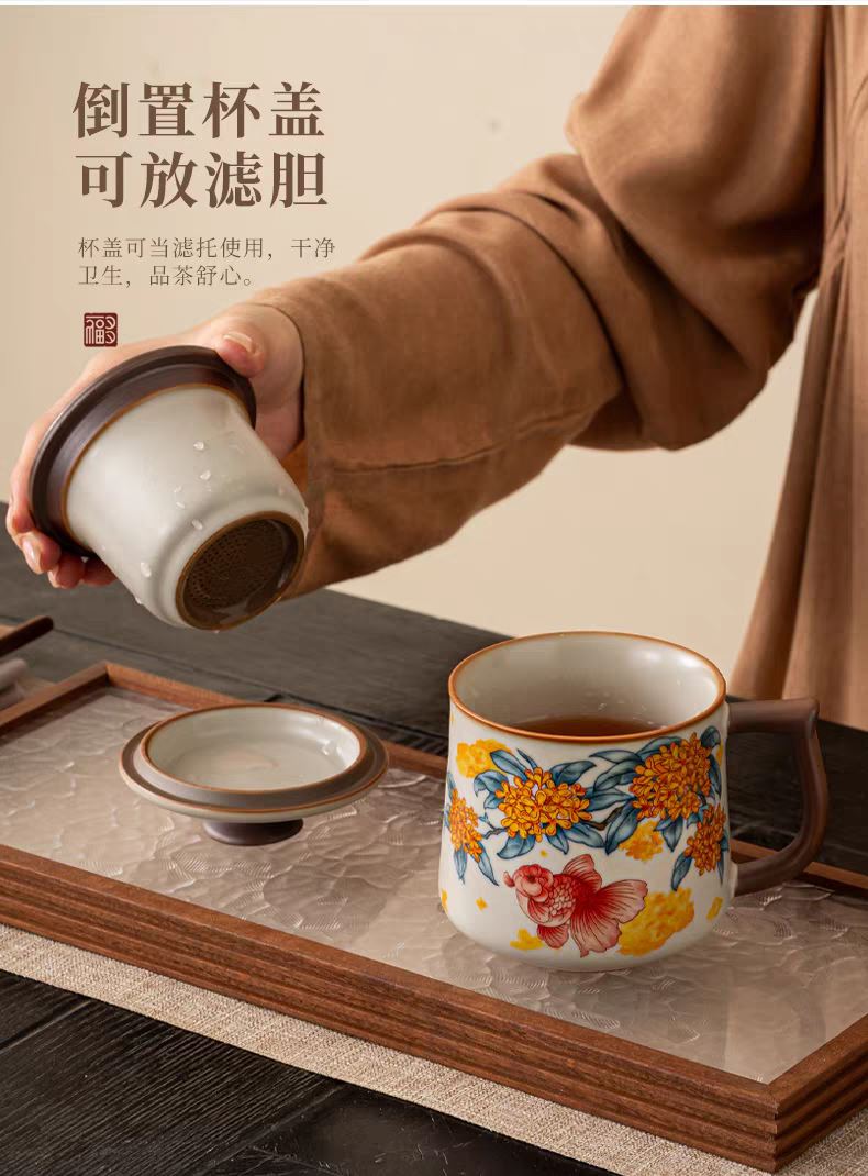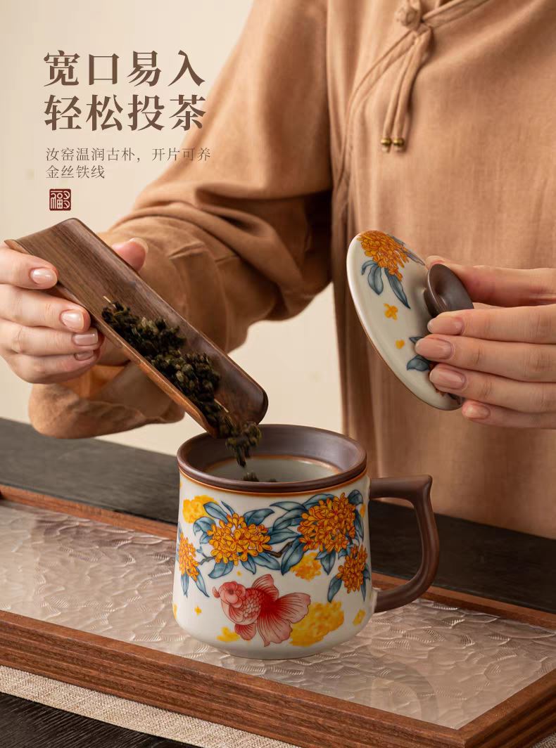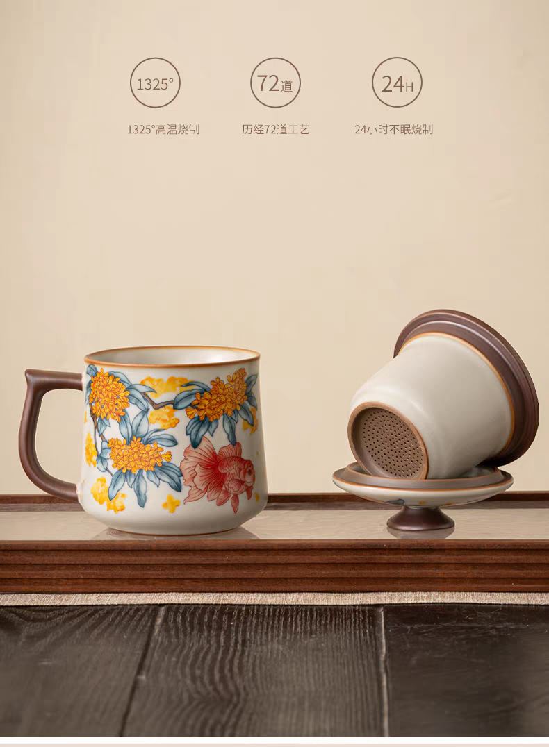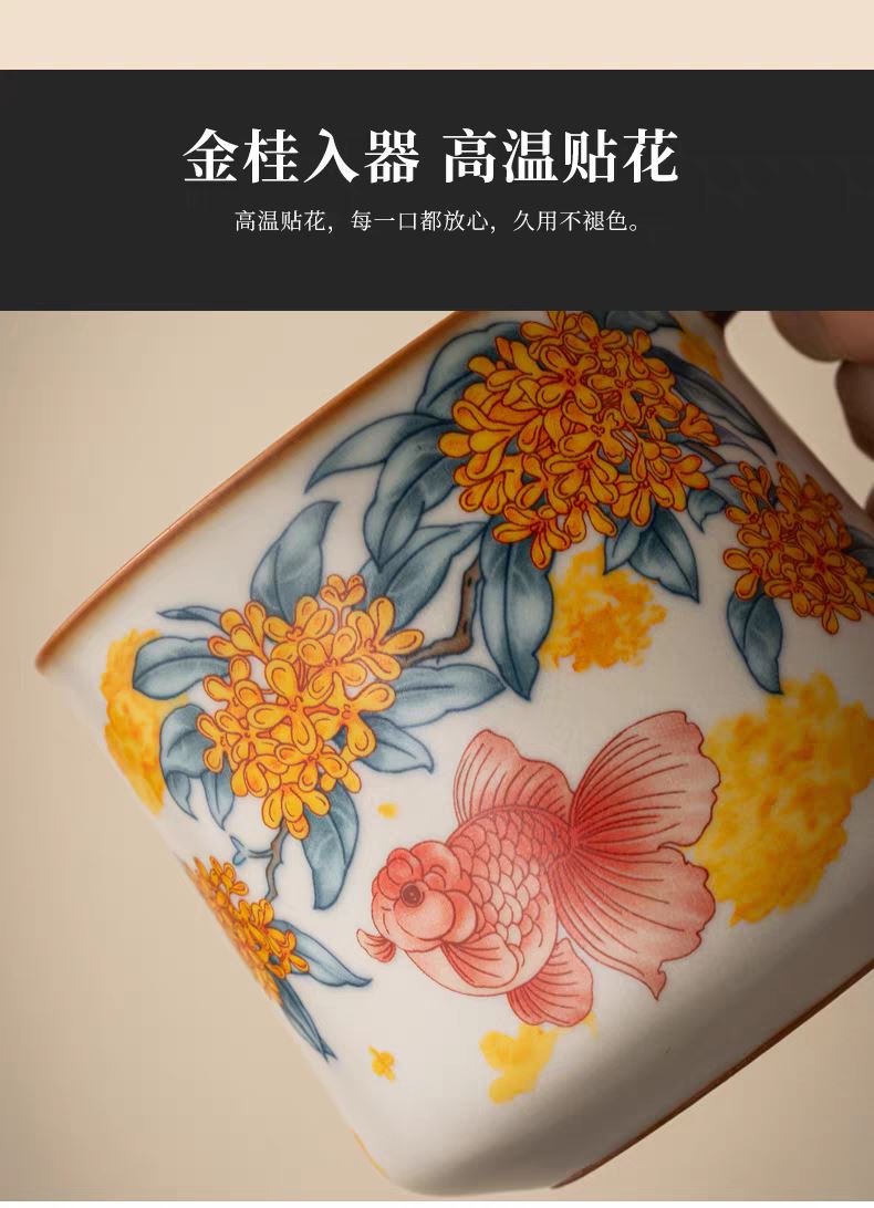 鵬翼開門紅馬上有錢、金桂獻鯉黃汝窯辦公杯配收藏證書 鵬翼開門紅馬上有錢、金桂獻鯉黃汝窯辦公杯配收藏證書