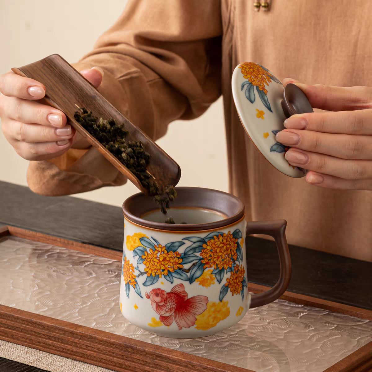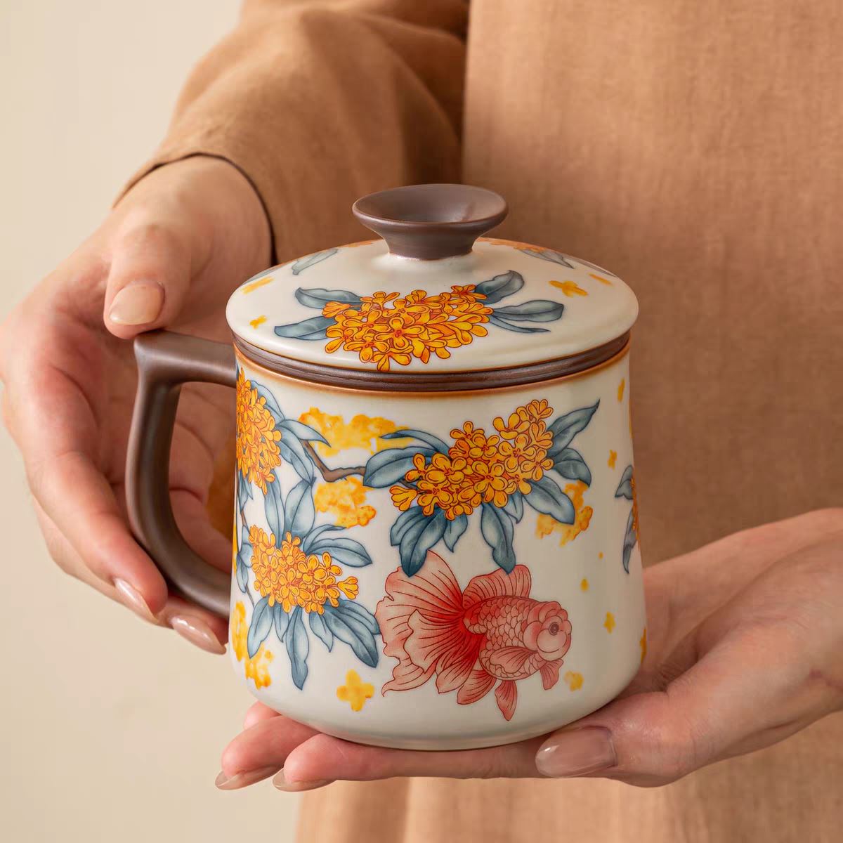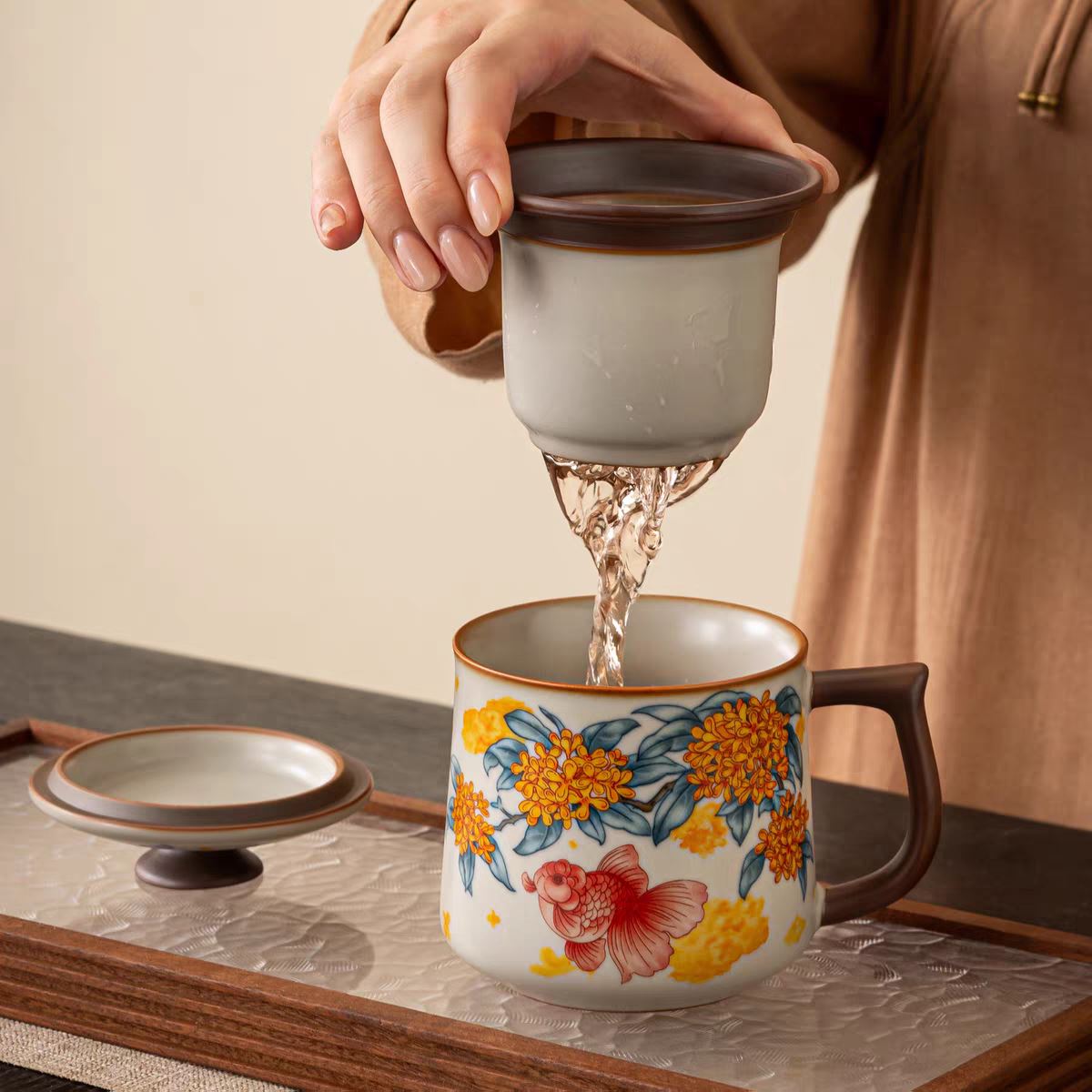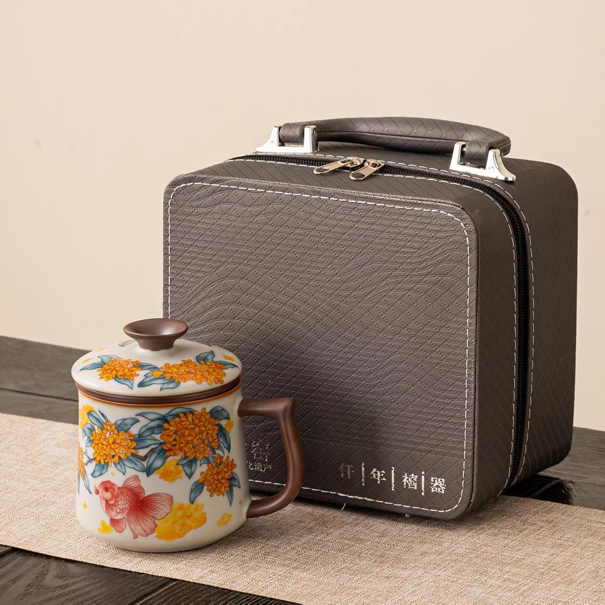 鵬翼開門紅馬上有錢、金桂獻鯉黃汝窯辦公杯配收藏證書 鵬翼開門紅馬上有錢、金桂獻鯉黃汝窯辦公杯配收藏證書